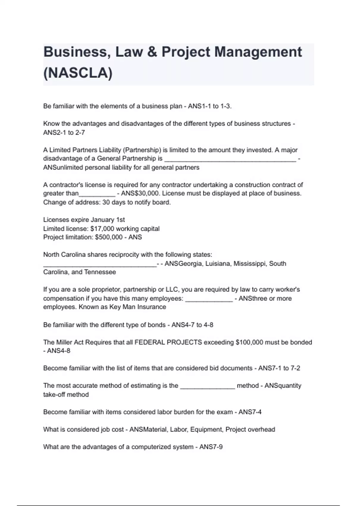 Business, Law & Project Management (NASCLA) 2024/2025 A+ score assured