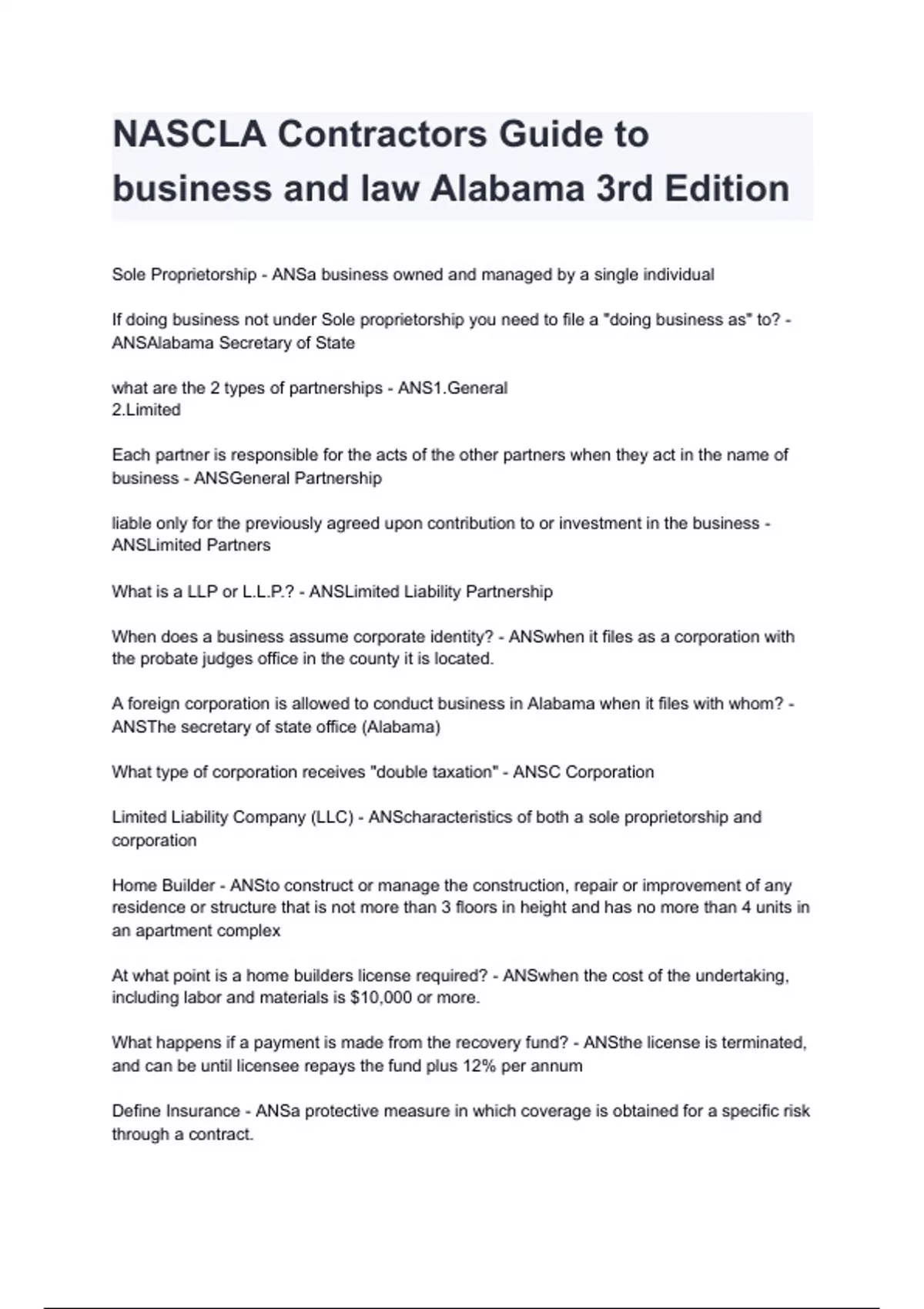 NASCLA Contractors Guide to business and law Alabama 3rd Edition 2024/2025 (100% verified)