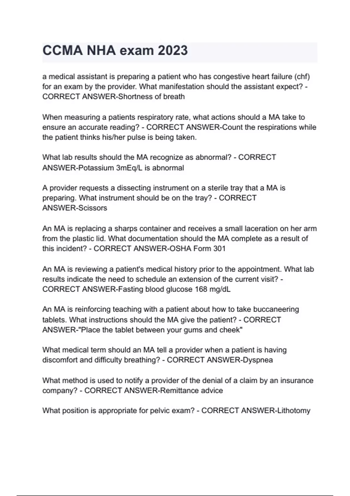 Exam of 26 pages for the course CCMA at CCMA (CCMA NHA exam 2023)