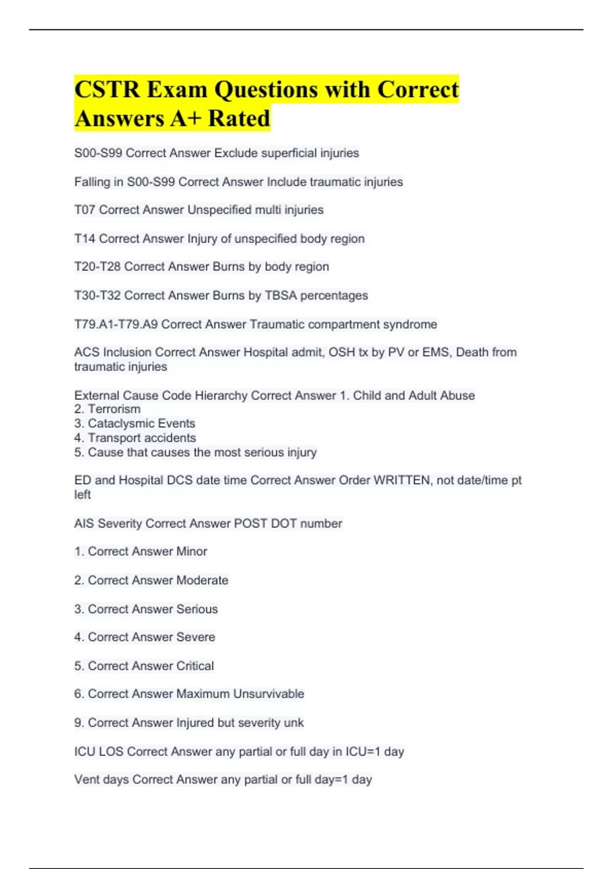 CSTR Exam Questions with Correct Answers A+ Rated