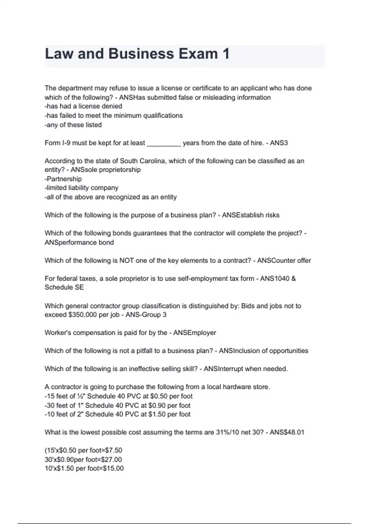 Law and Business Exam 1 2024/2025 A+ score assured
