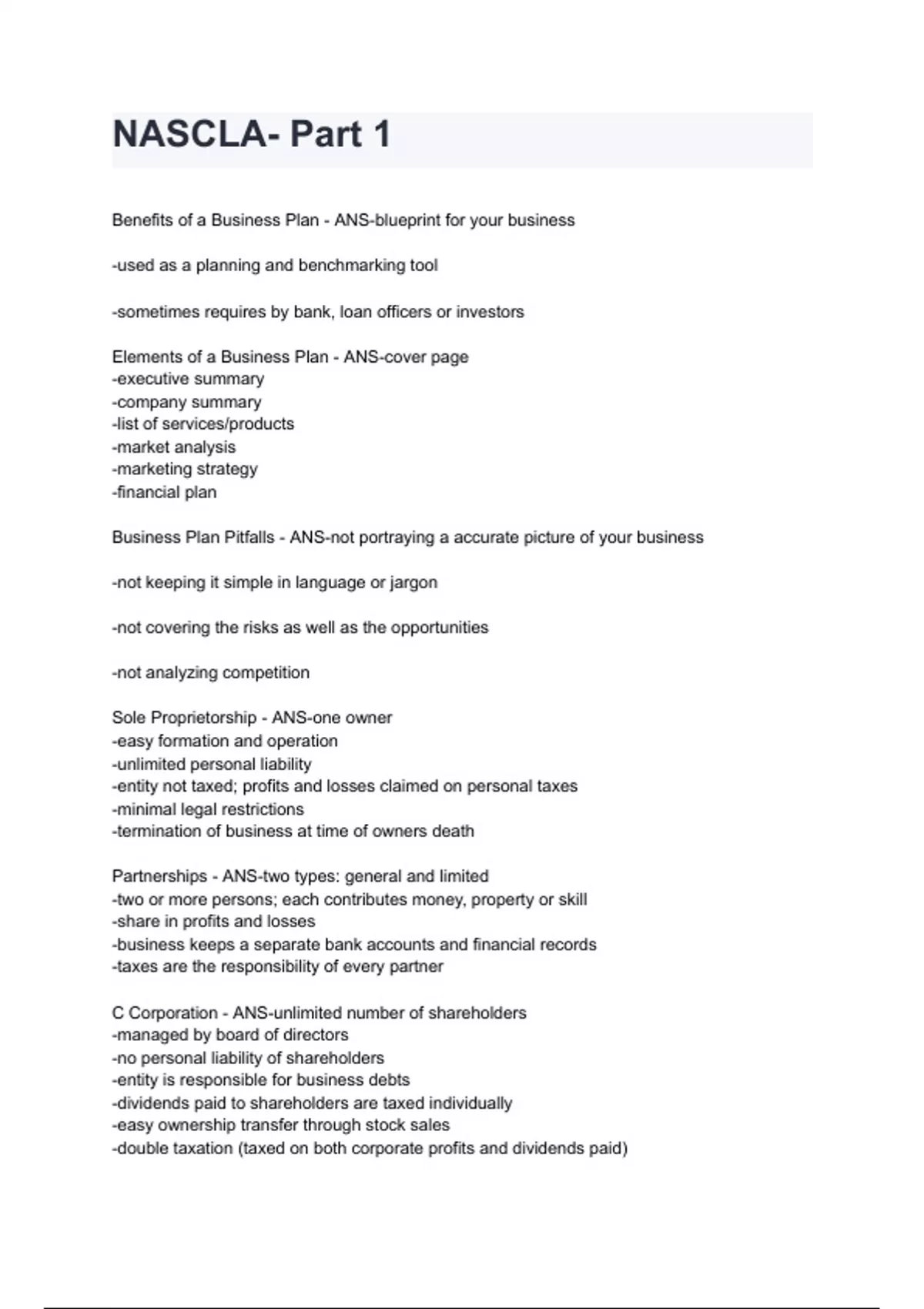 NASCLA- Part 1 2024/2025 A+ score assured