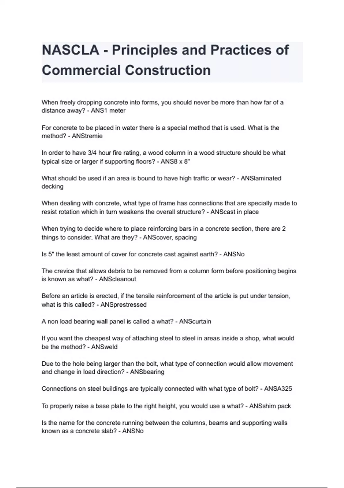 NASCLA - Principles and Practices of Commercial Construction 2024/2025 A+ score assured
