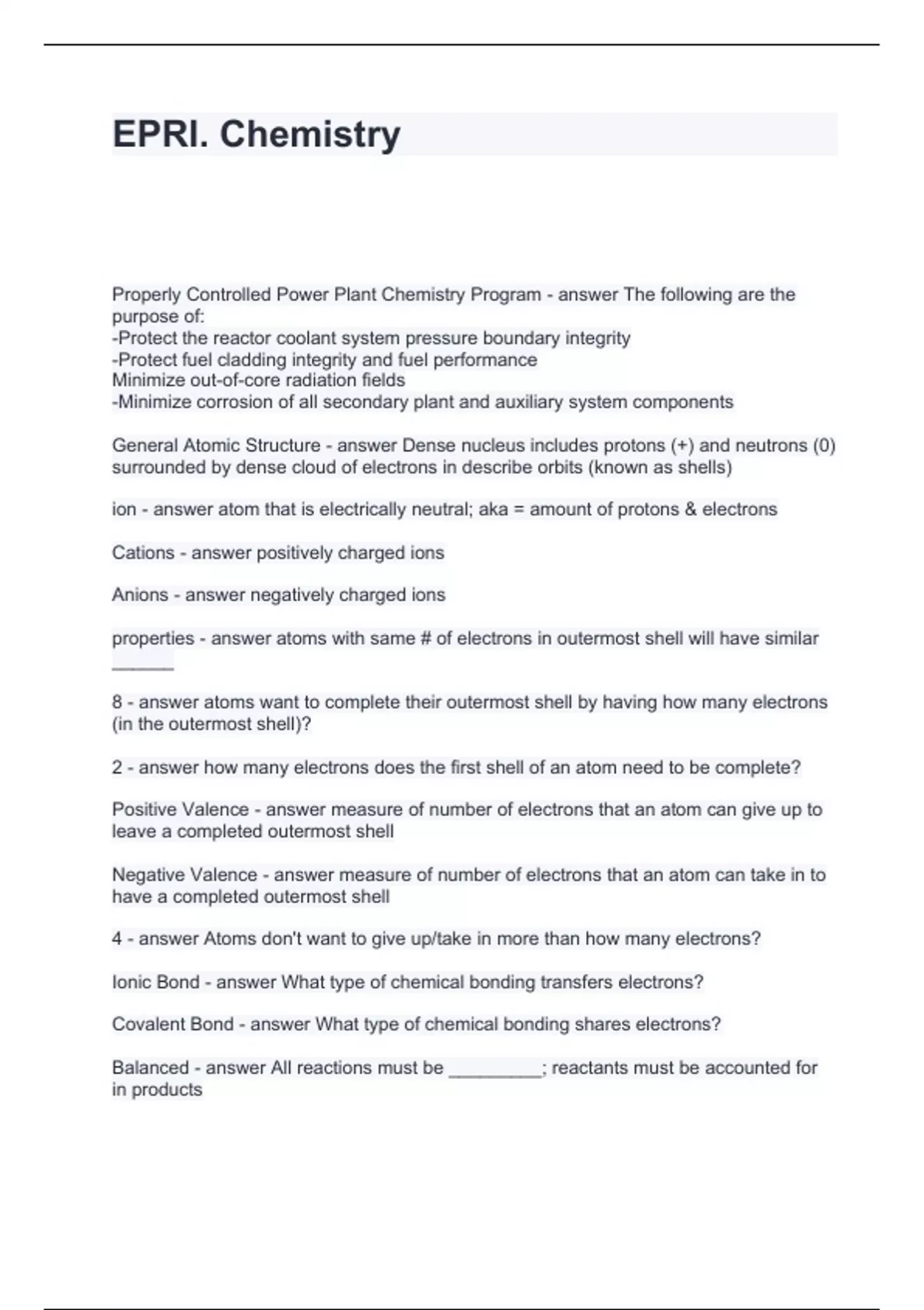 Exam of 14 pages for the course EPRI at EPRI (EPRI. Chemistry)