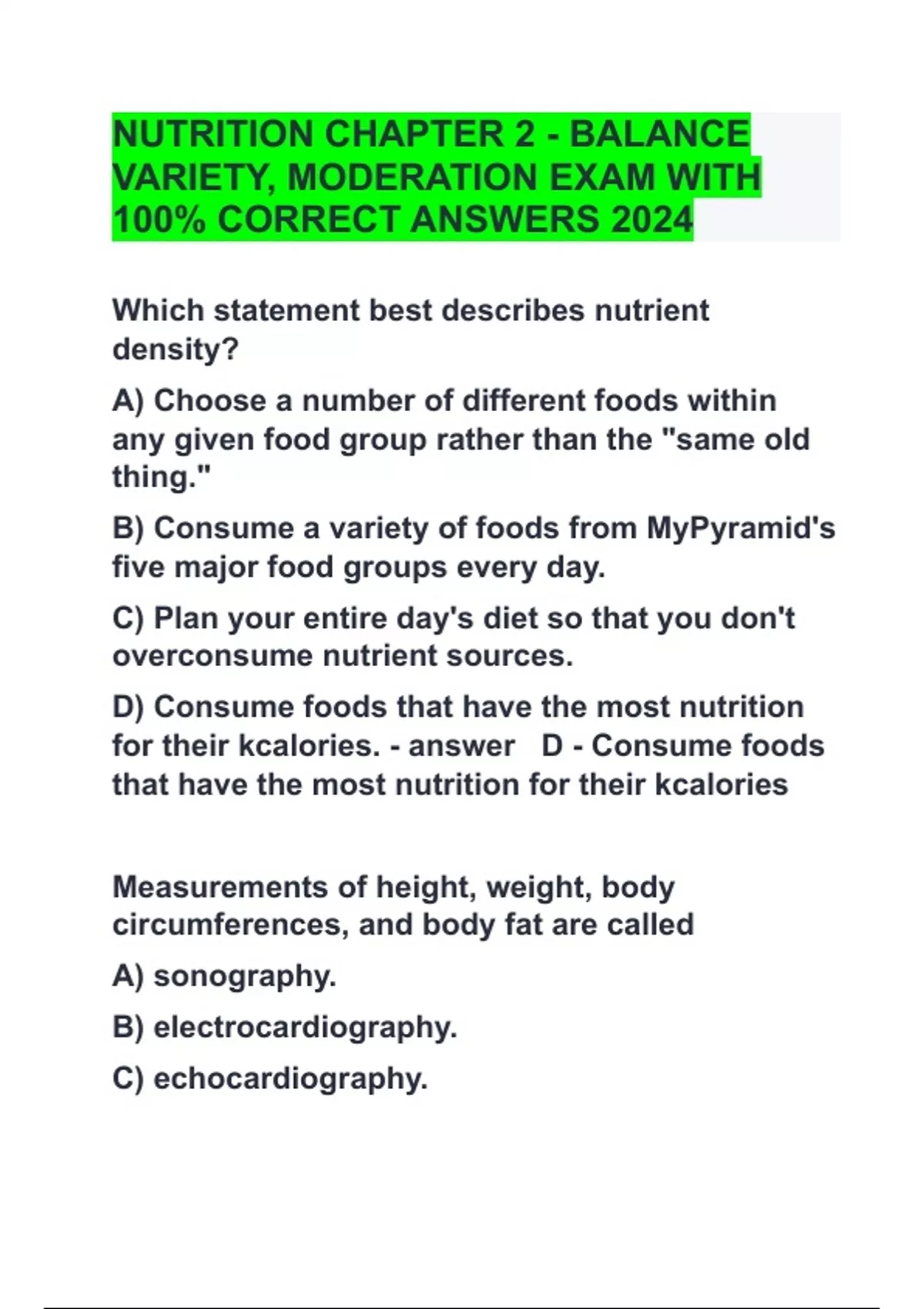 NUTRITION CHAPTER 2 - BALANCE VARIETY, MODERATION EXAM WITH 100% CORRECT ANSWERS