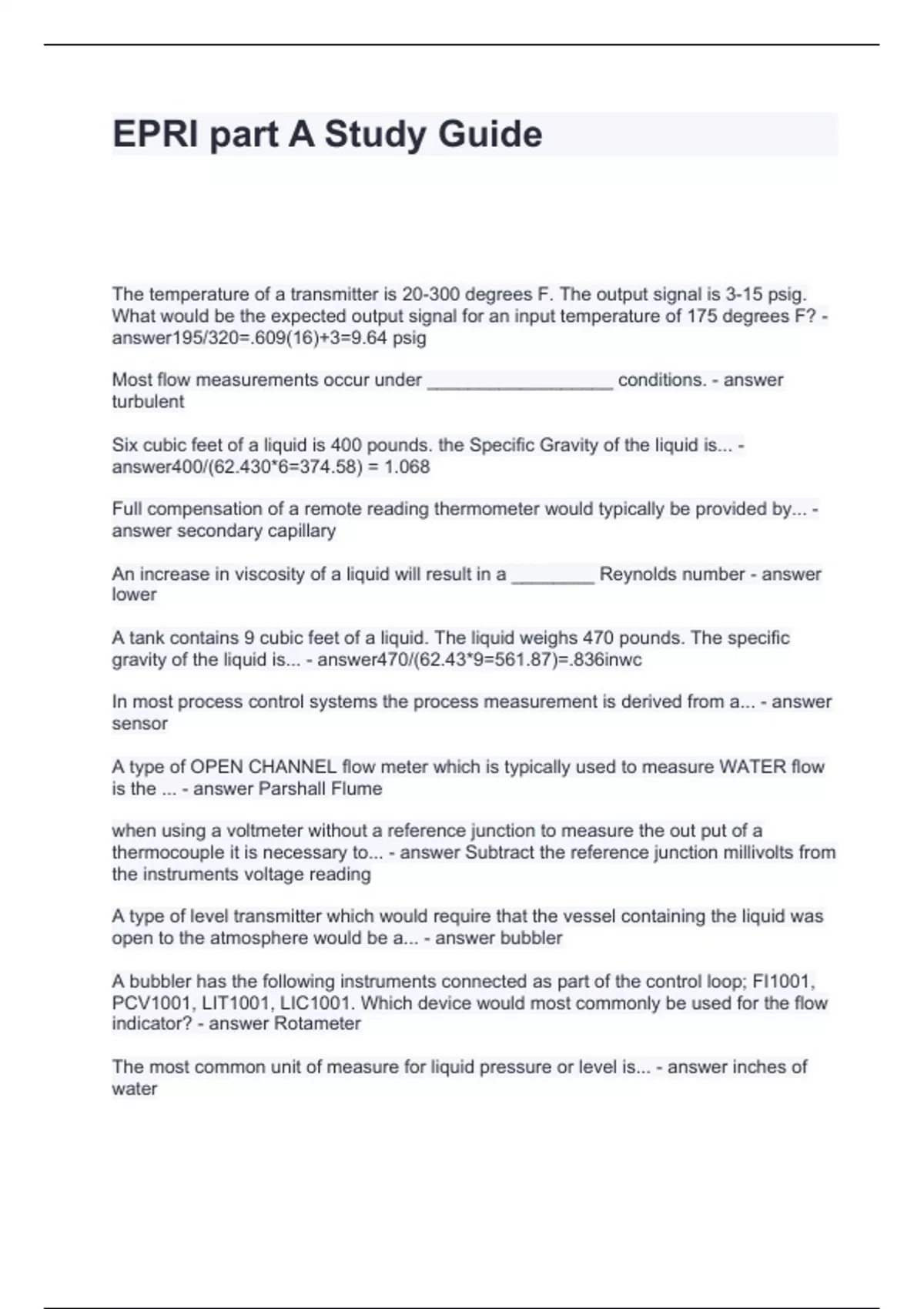 EPRI part A Study Guide