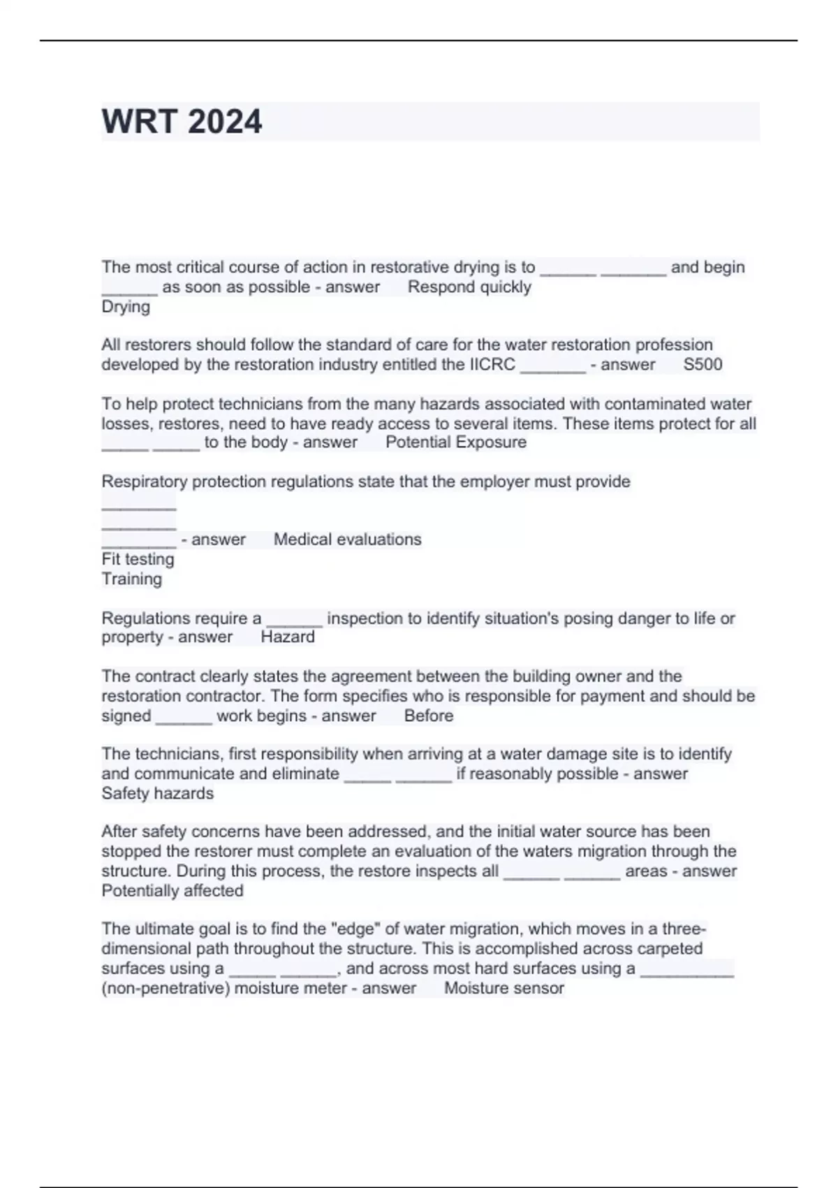 Exam of 9 pages for the course IICRC at IICRC (WRT 2024)