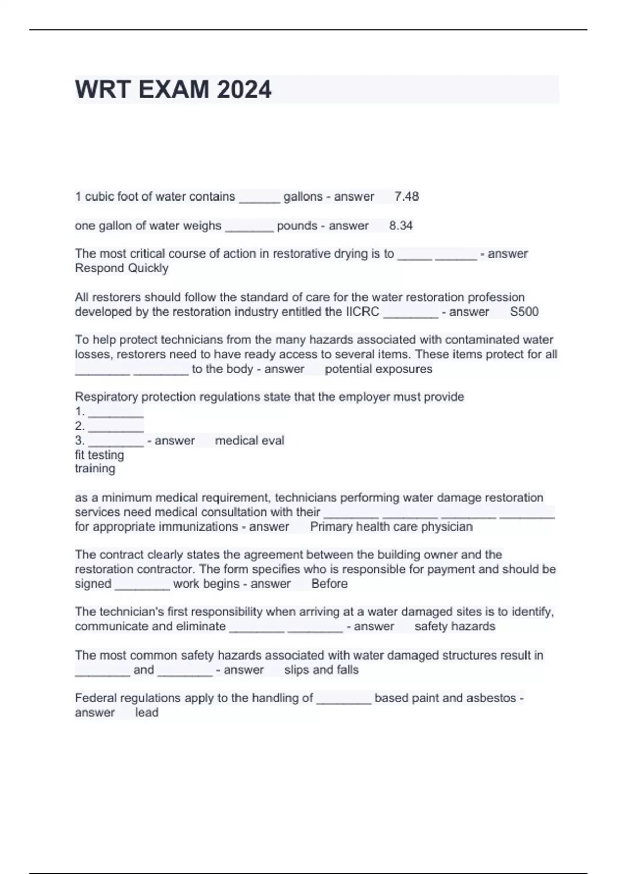 Exam of 13 pages for the course IICRC at IICRC (WRT EXAM 2024)