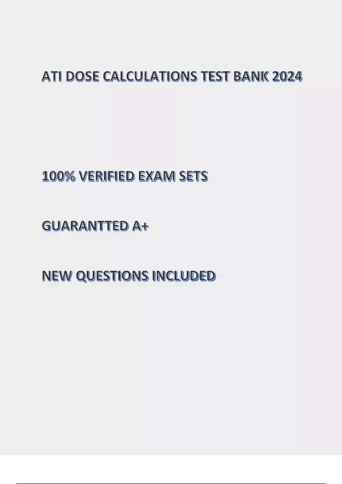 ATI DOSE CALCULATIONS TEST BANK 2024 100% VERIFIED EXAM SETS GUARANTTED A+ NEW QUESTIONS INCLUDED