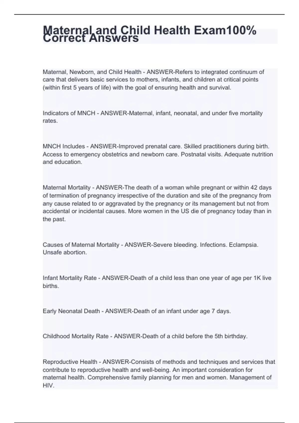 Childhood Mortality Rate - ANSWER-Death of a child before the 5th birthday.