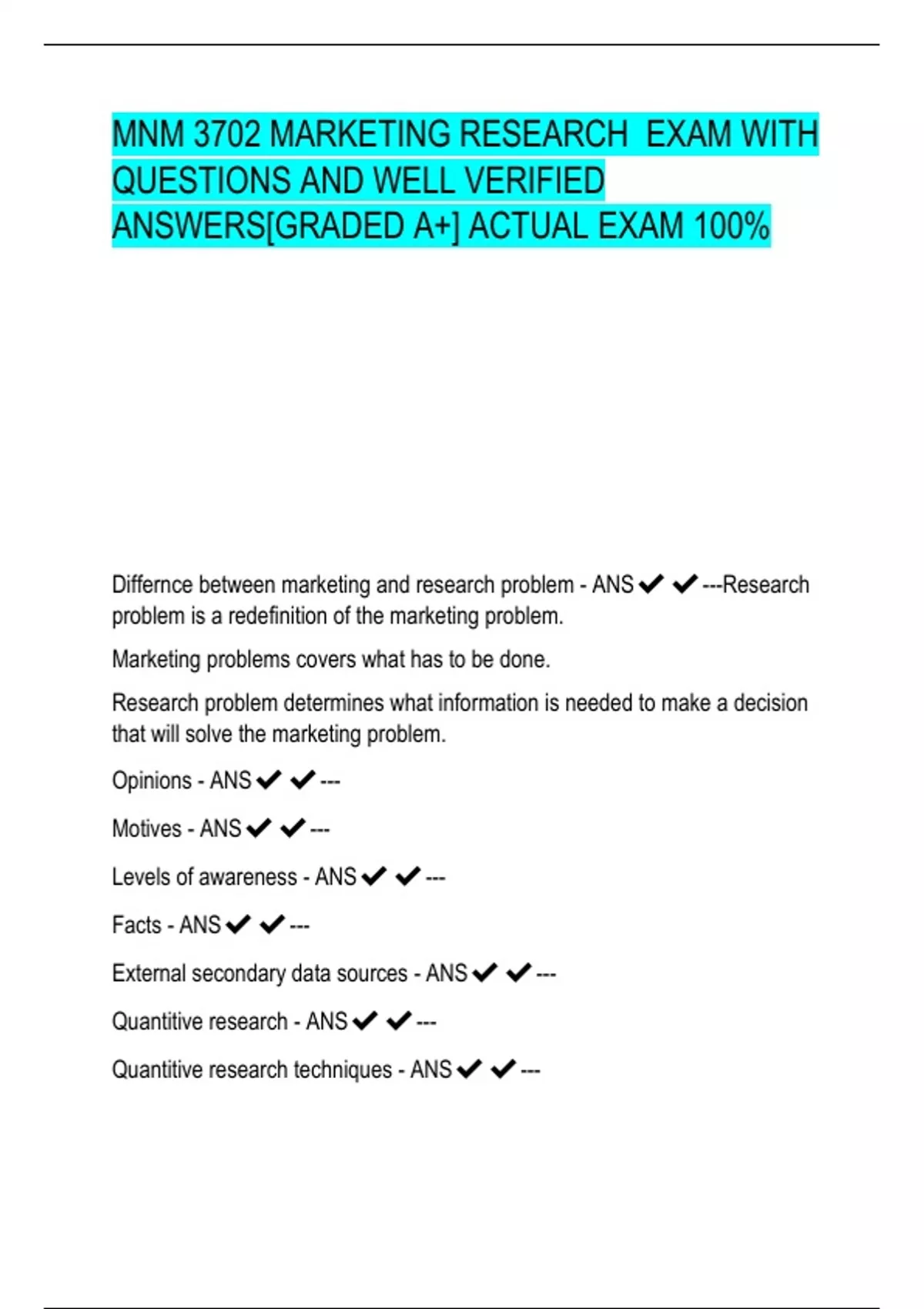 mnm 3702 marketing research exam with ques
