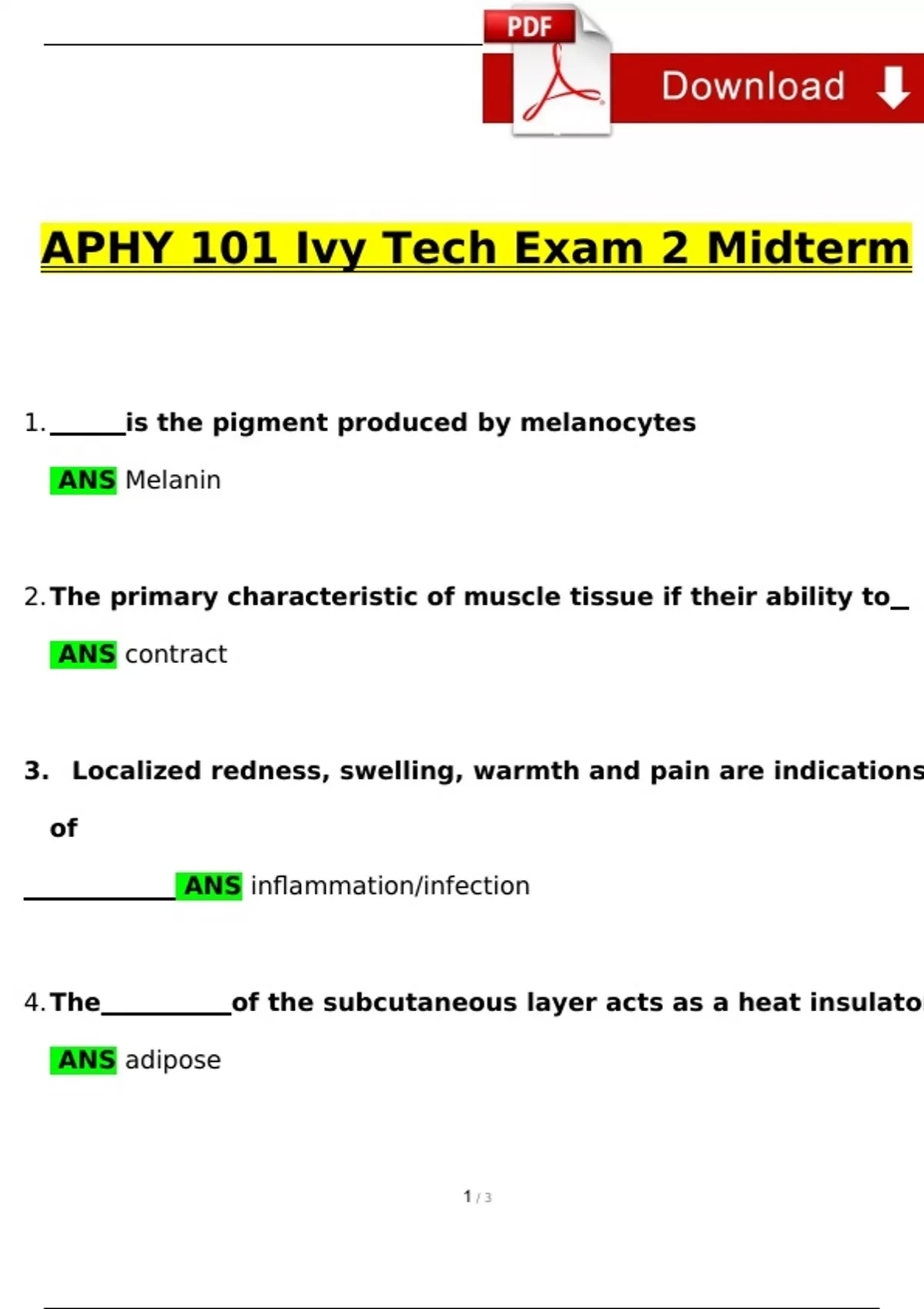 Ivy Tech APHY 101 Exam Expected Questions and Answers (Verified by Expert)