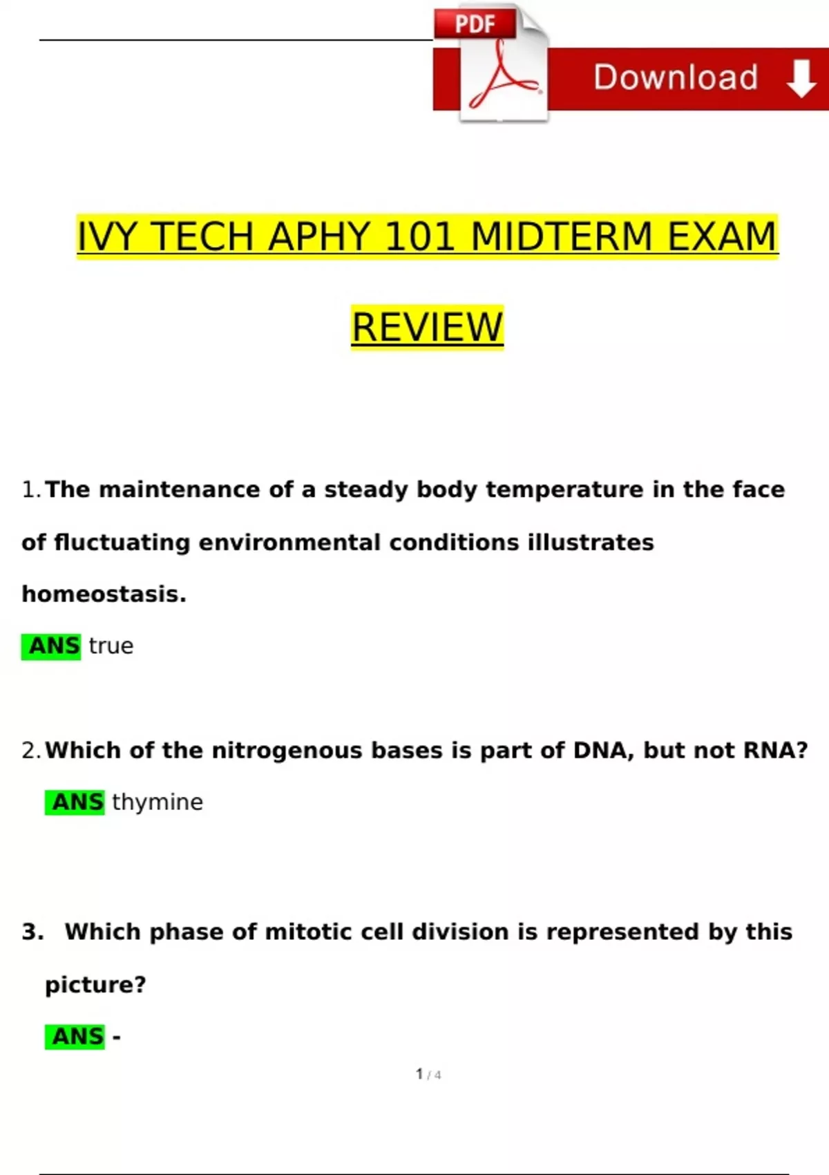 Ivy Tech APHY 101 Exam Expected Questions and Answers (Verified by Expert)