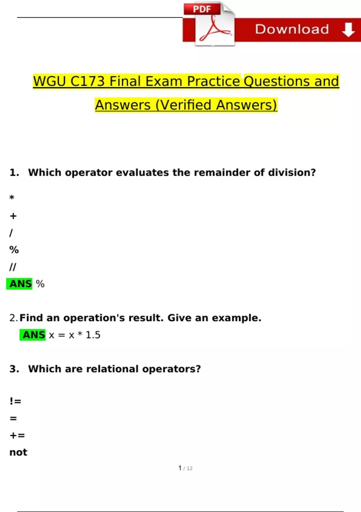 WGU C173 Exam Expected Questions and Answers (Verified by Expert) WGU C173 Exam Expected Questions and Answers (Verified by Expert) WGU C173 Exam Expected Questions and Answers (Verified by Expert)