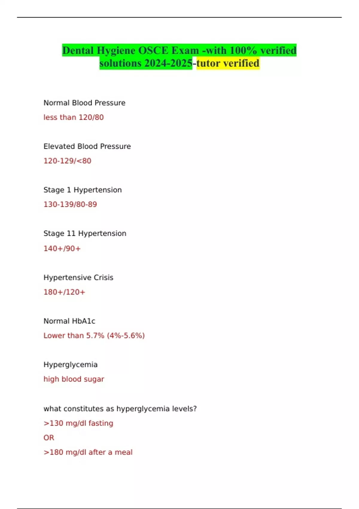 Dental Hygiene OSCE Exam -with 100% verified solutions -tutor verified