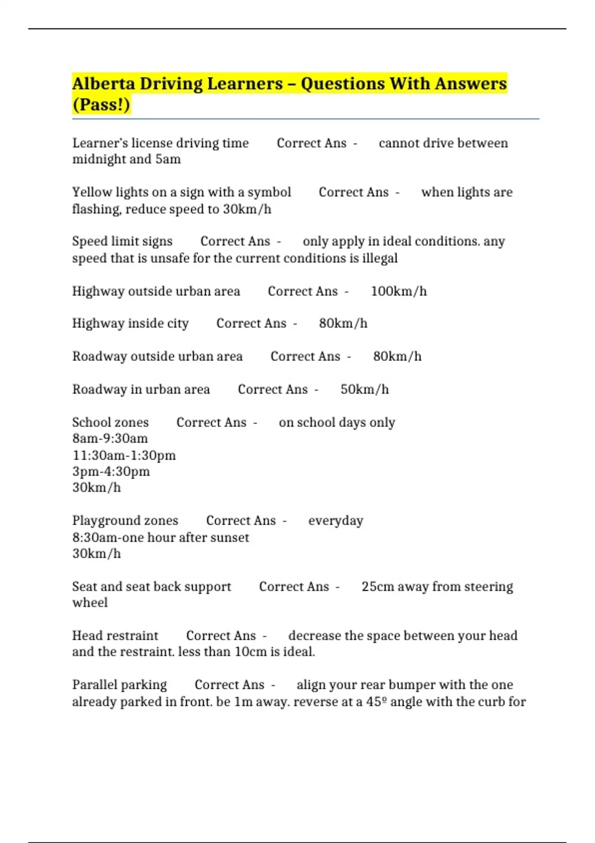 Alberta Driving Learners – Questions With Answers (Pass!)