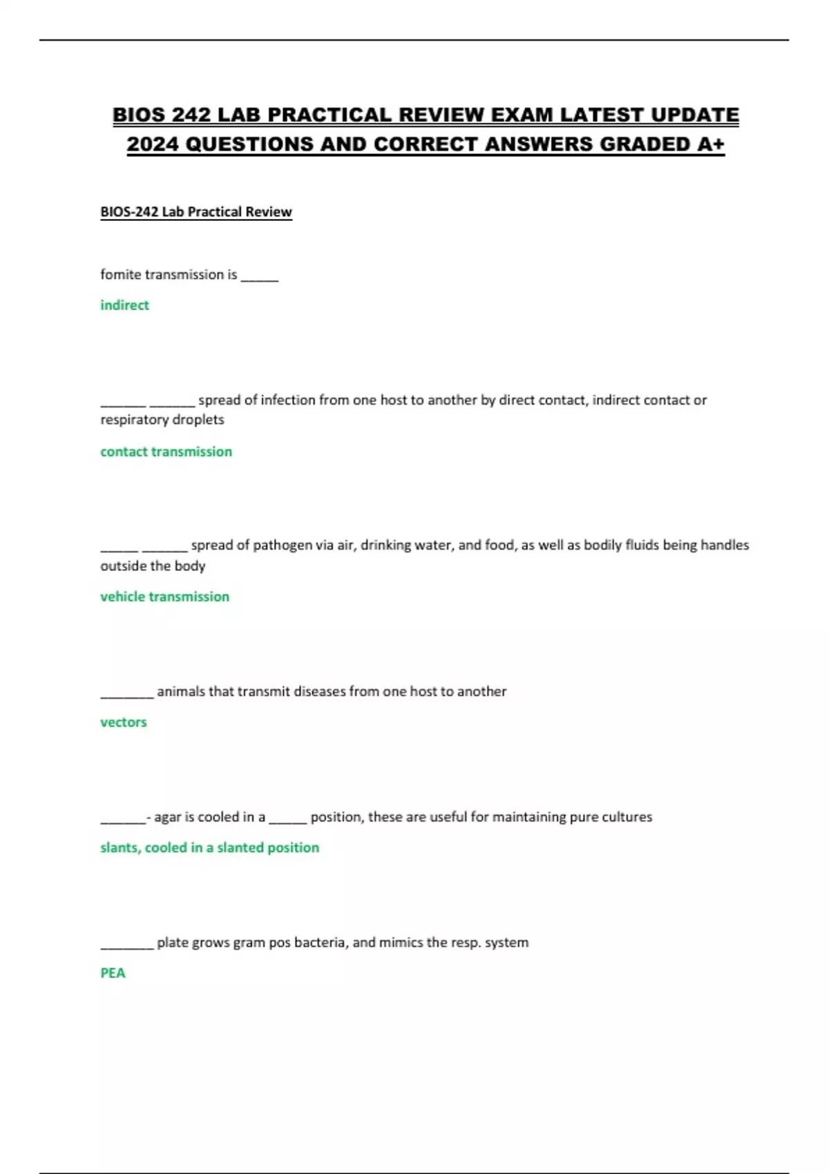 BIOS 242 LAB PRACTICAL REVIEW EXAM LATEST UPDATE 2024 QUESTIONS AND CORRECT ANSWERS GRADED A+