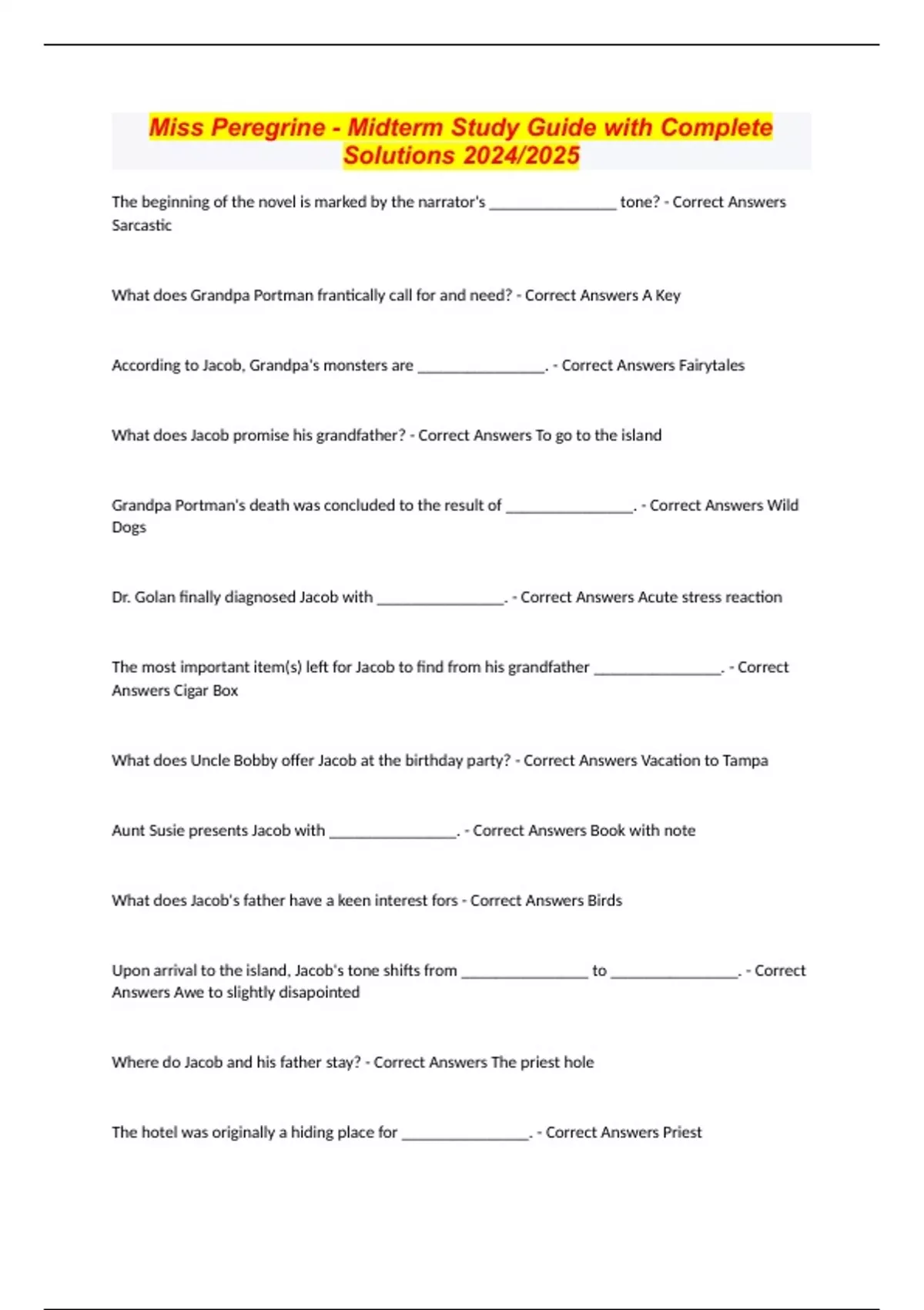 Miss Peregrine - Midterm Study Guide with Complete Solutions 2024/2025