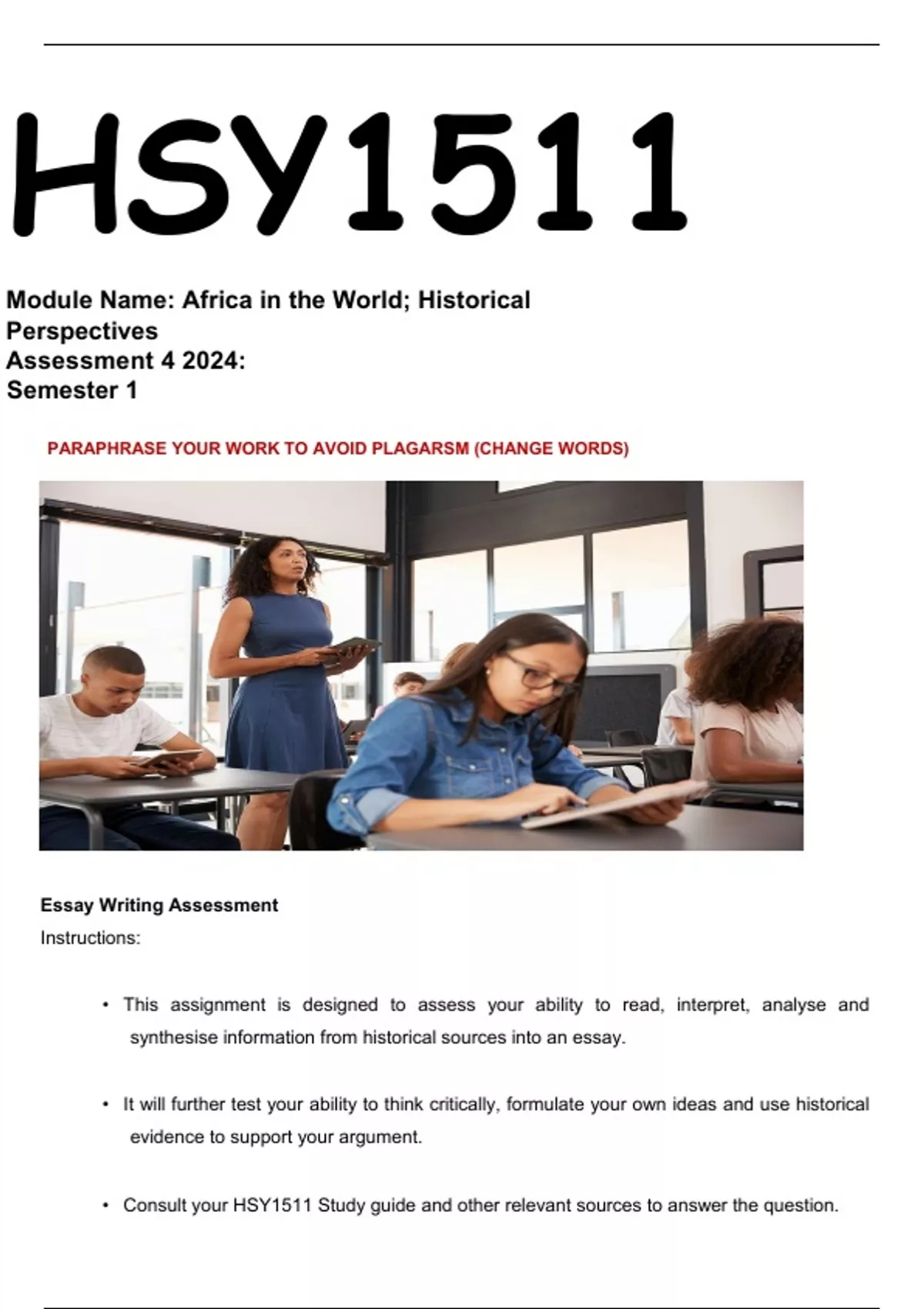 • Consult your HSY1511 Study guide and other relevant sources to answer the question.