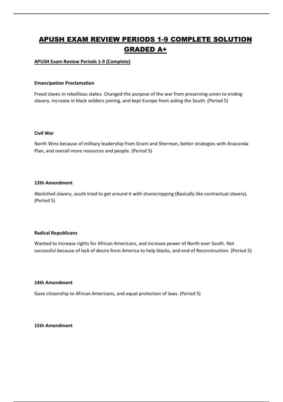 - APUSH PERIODS 1-9 COMPLETE SOLUTION G