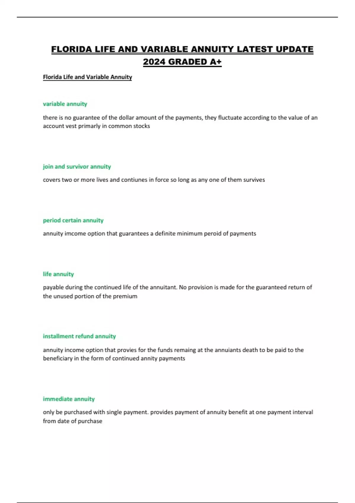 FLORIDA LIFE AND VARIABLE ANNUITY LATEST UPDATE 2024 GRADED A+