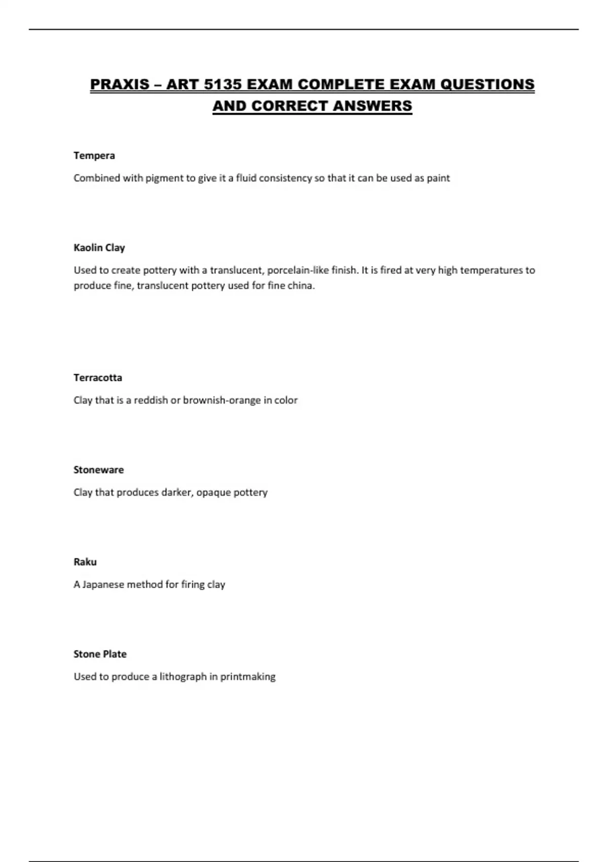 PRAXIS – ART 5135 EXAM COMPLETE EXAM QUESTIONS AND CORRECT ANSWERS