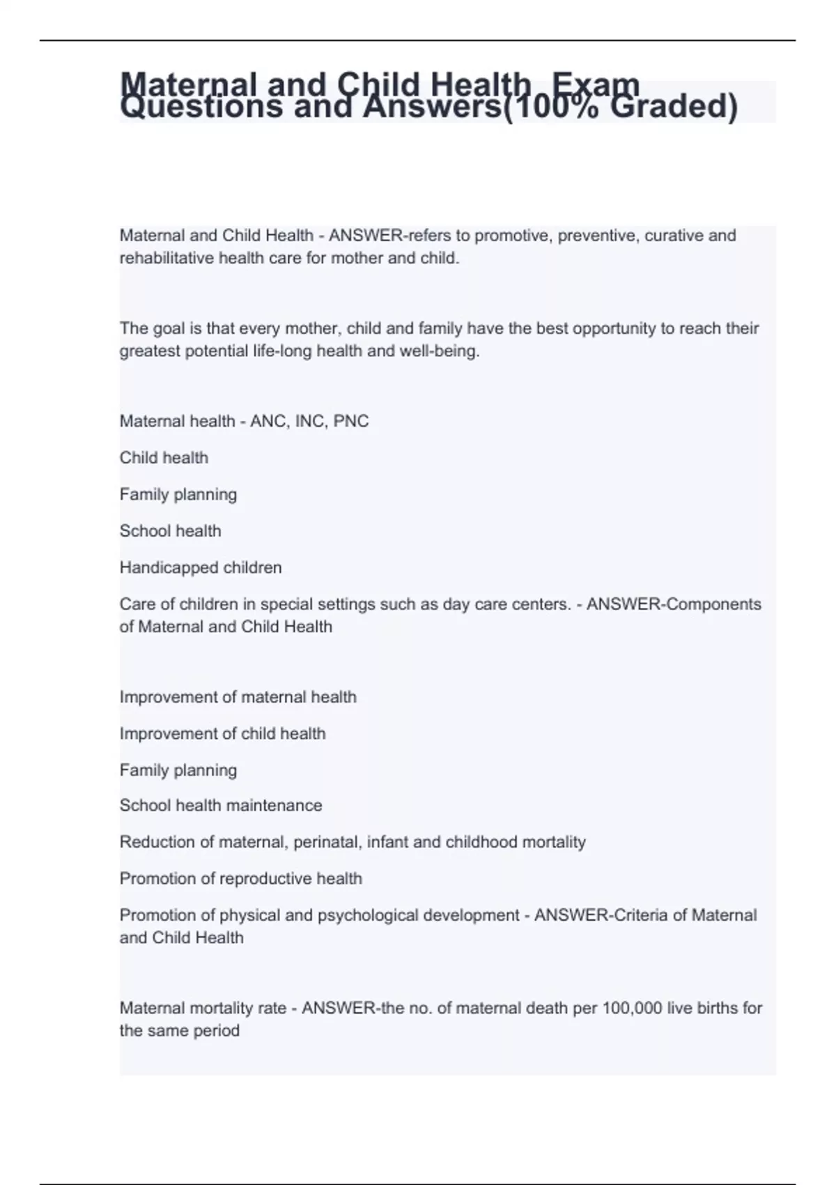 Maternal and Child Health - ANSWER-refers to promotive, preventive, curative and