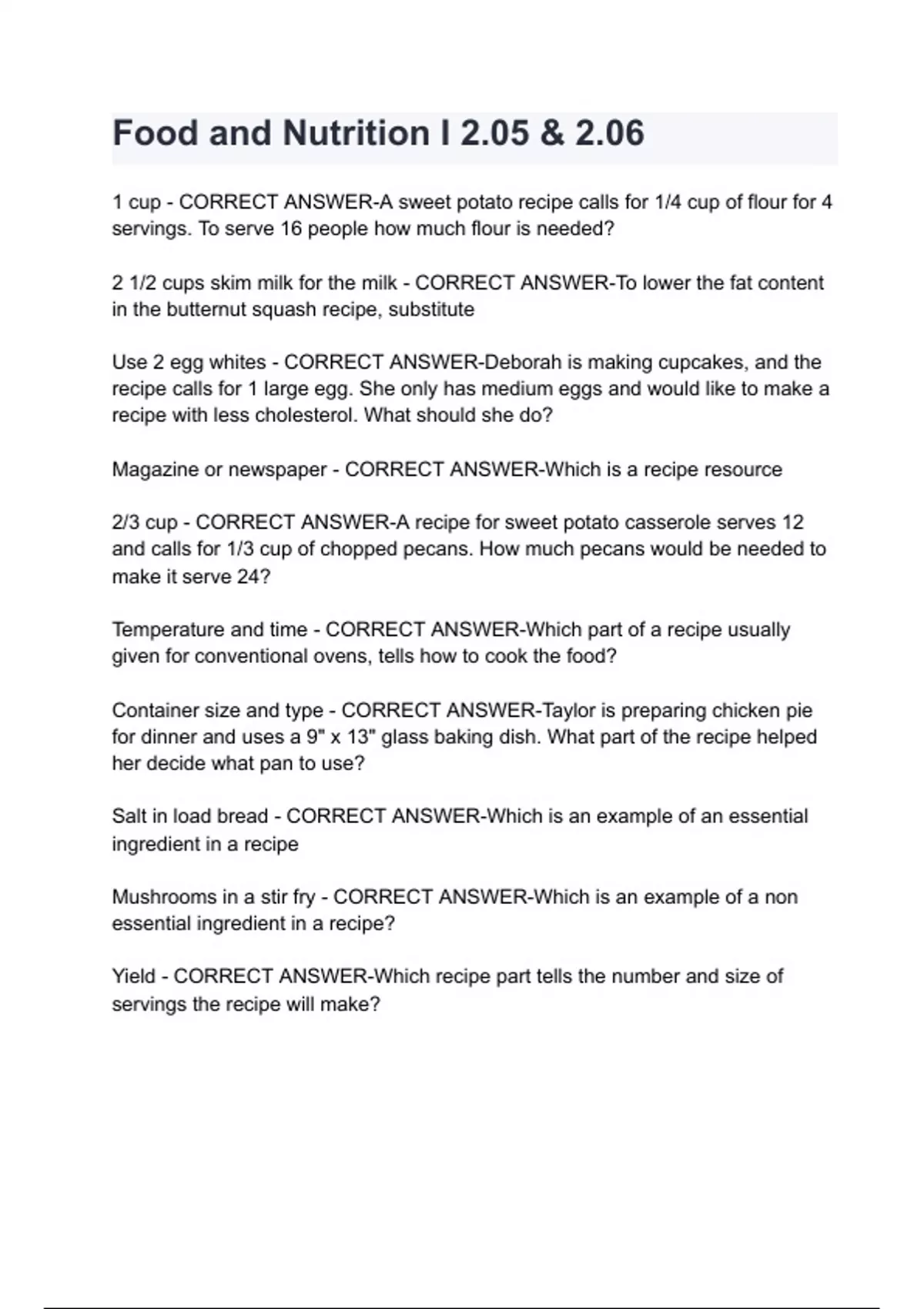 Food and Nutrition I 2.05 & 2.06