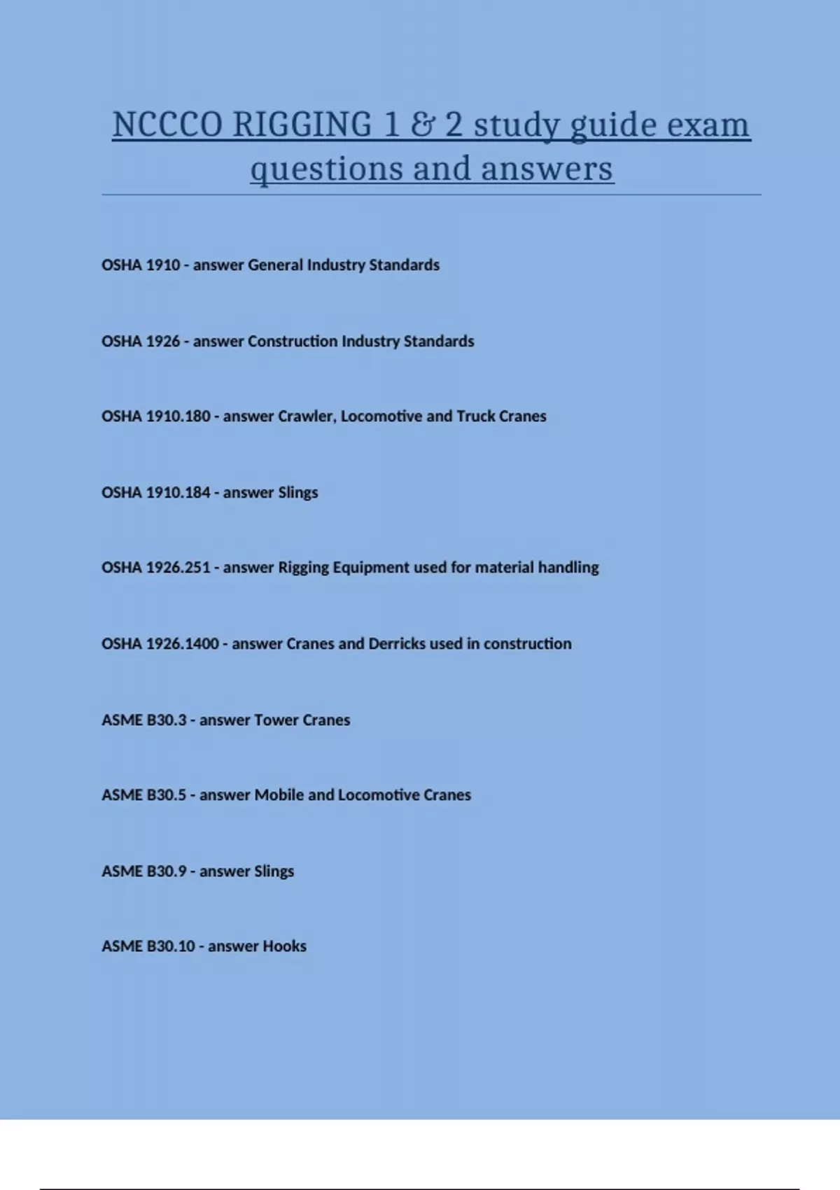 NCCCO RIGGING 1 & 2 study guide exam questions and answers.