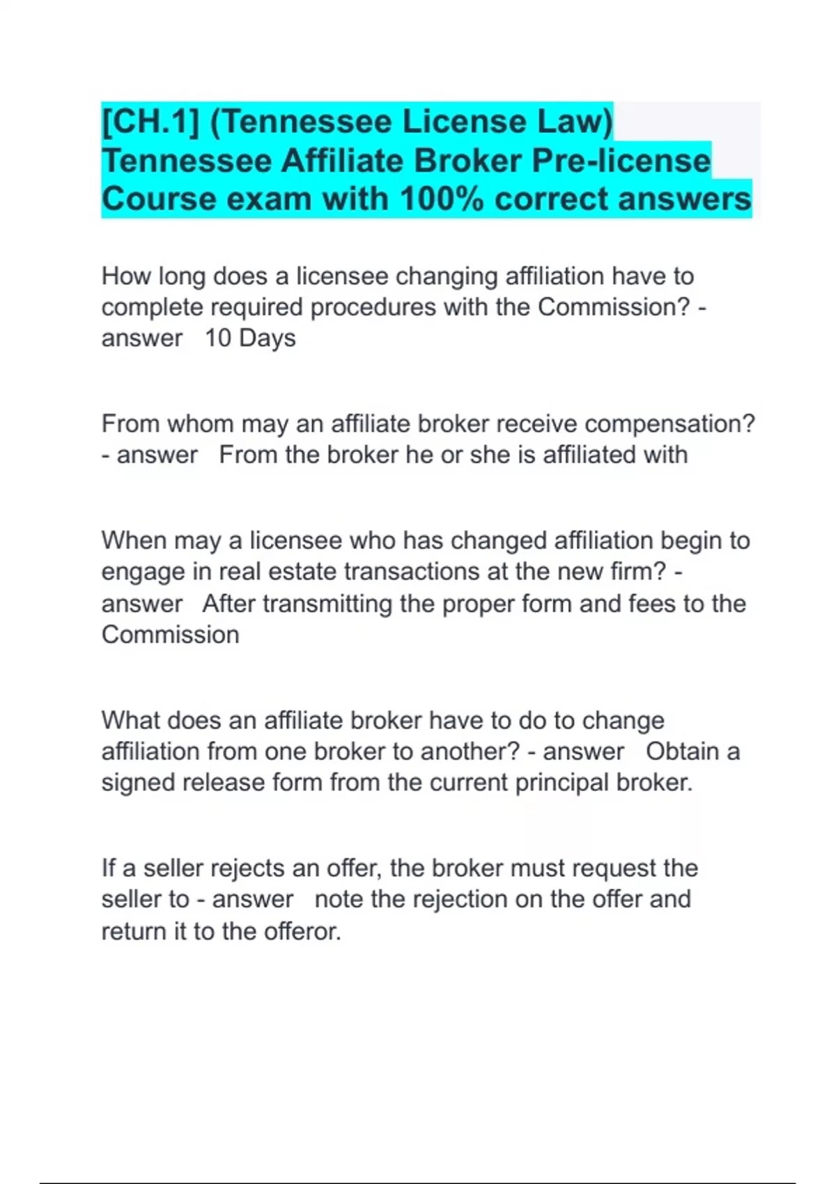 [CH.1] (Tennessee License Law) Tennessee Affiliate Broker Pre-license Course exam with 100% correct answers