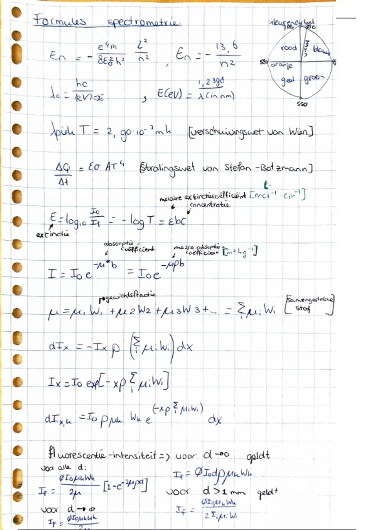 Een praktische samenvatting van alle belangrijke formules die gebruikt worden in het vak spectrometrie.