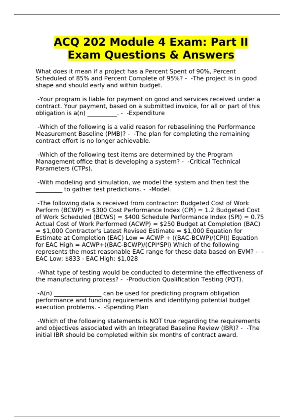 ACQ 202 Module 4 Exam: Part II Exam Questions & Answers