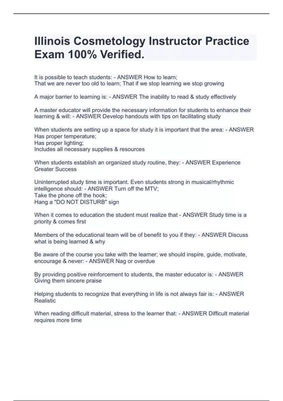 Illinois Cosmetology Instructor Practice Exam 100% Verified.