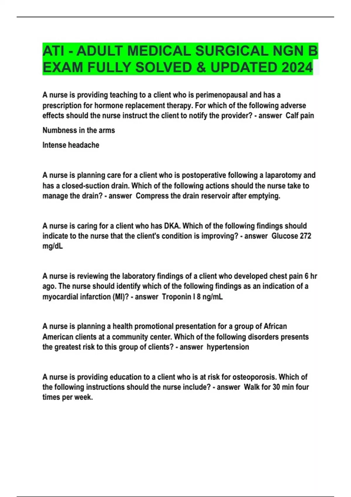 ATI - ADULT MEDICAL SURGICAL NGN B EXAM FULLY SOLVED & UPDATED 2024