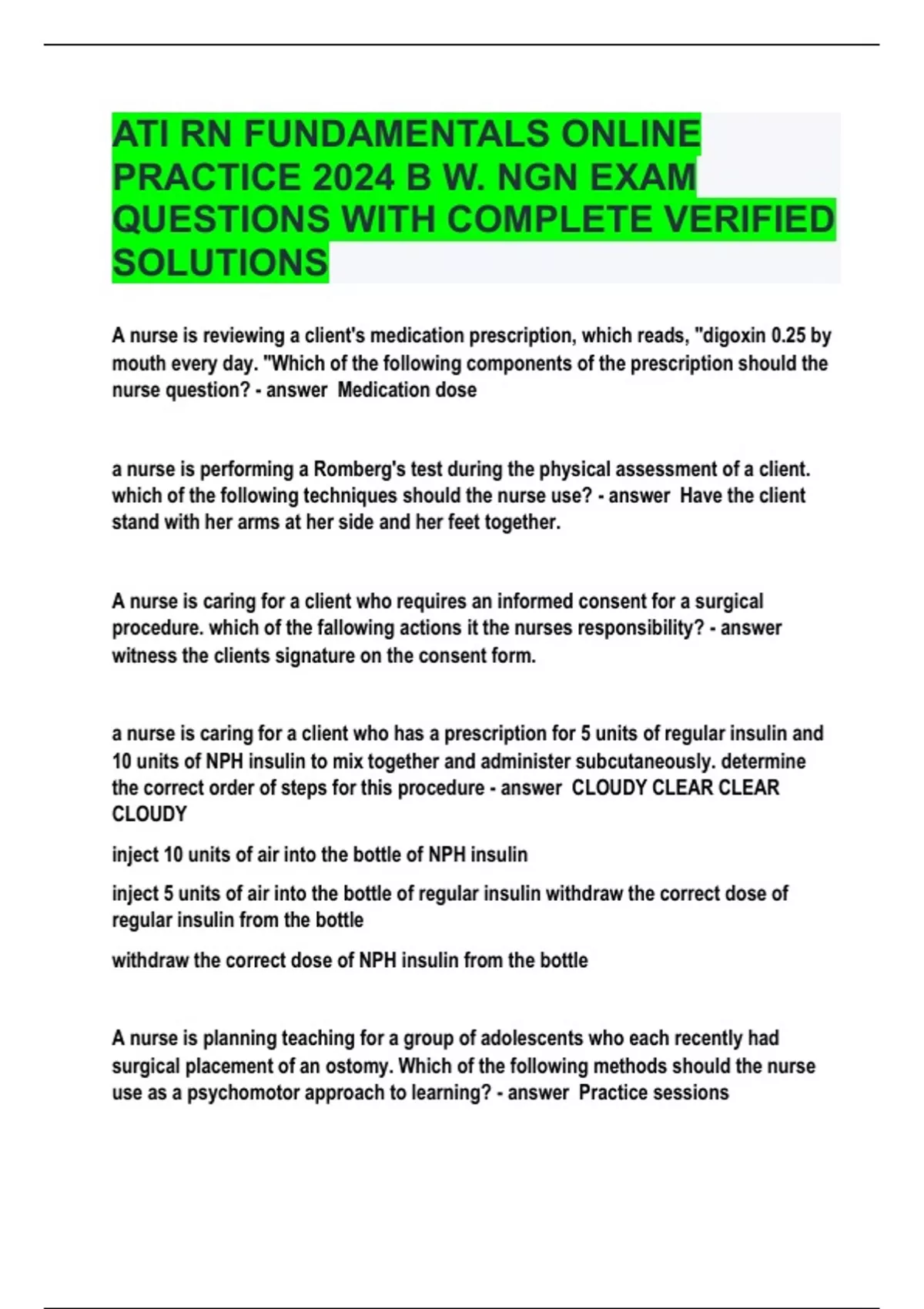 ATI RN FUNDAMENTALS ONLINE PRACTICE 2024 B W. NGN EXAM QUESTIONS WITH COMPLETE SOLUTIONS
