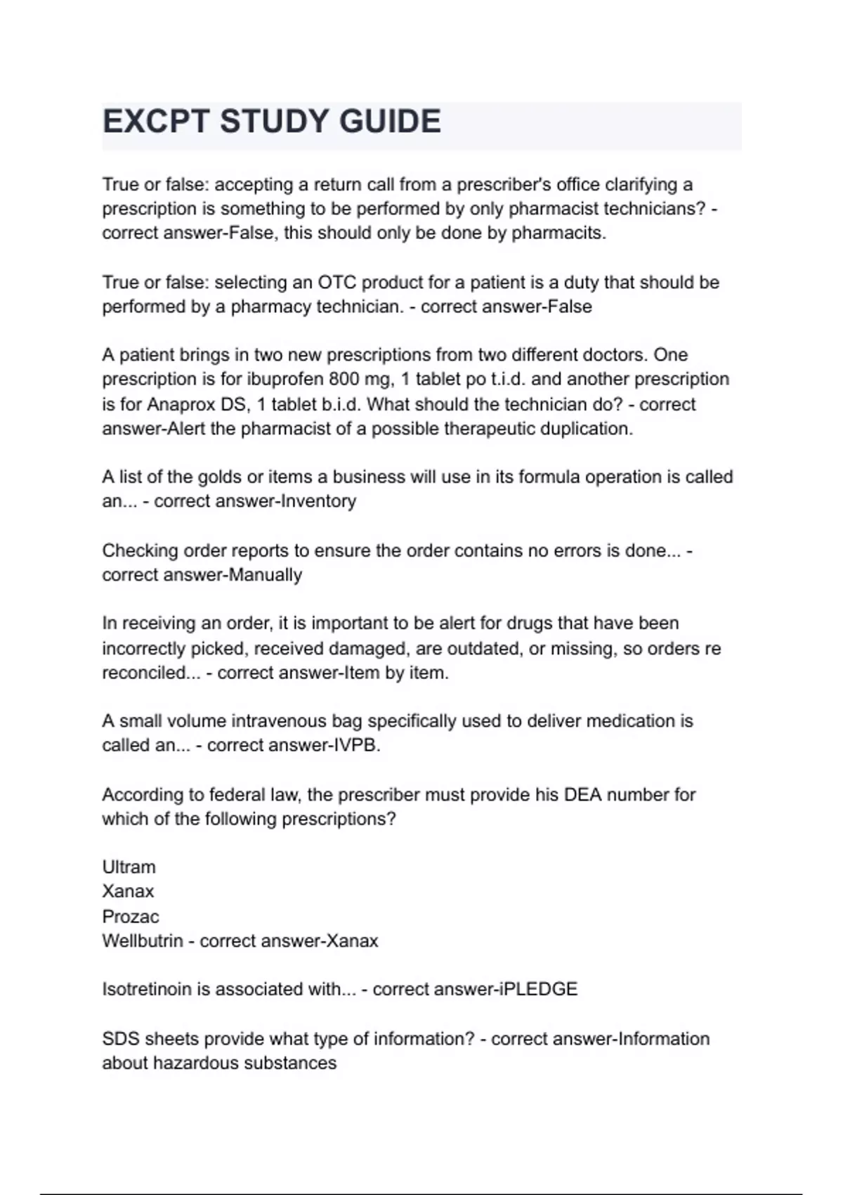 excpt study guide questions and answers latest 202