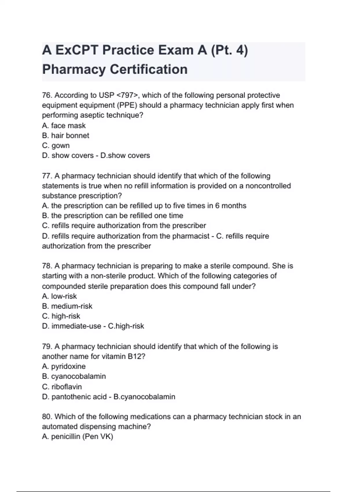 A ExCPT Practice Exam A (Pt. 4) Pharmacy Certification