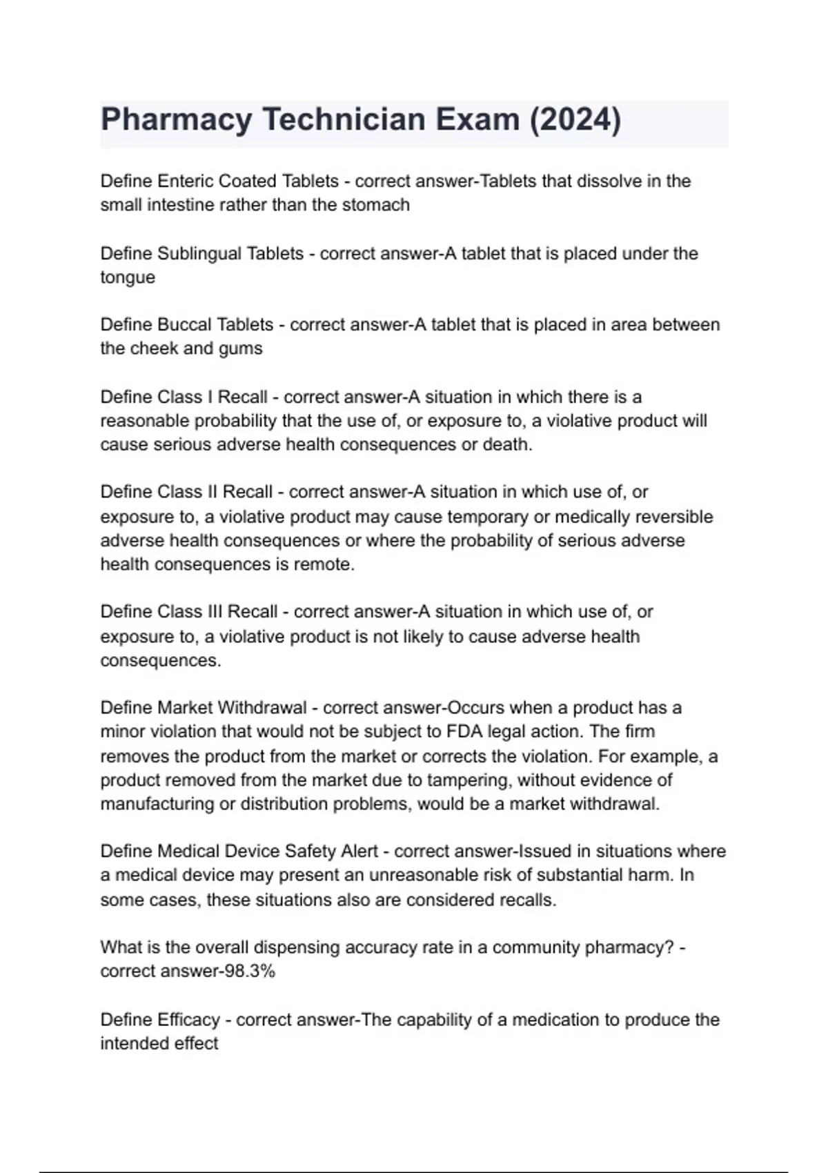Pharmacy Technician Exam (2024)