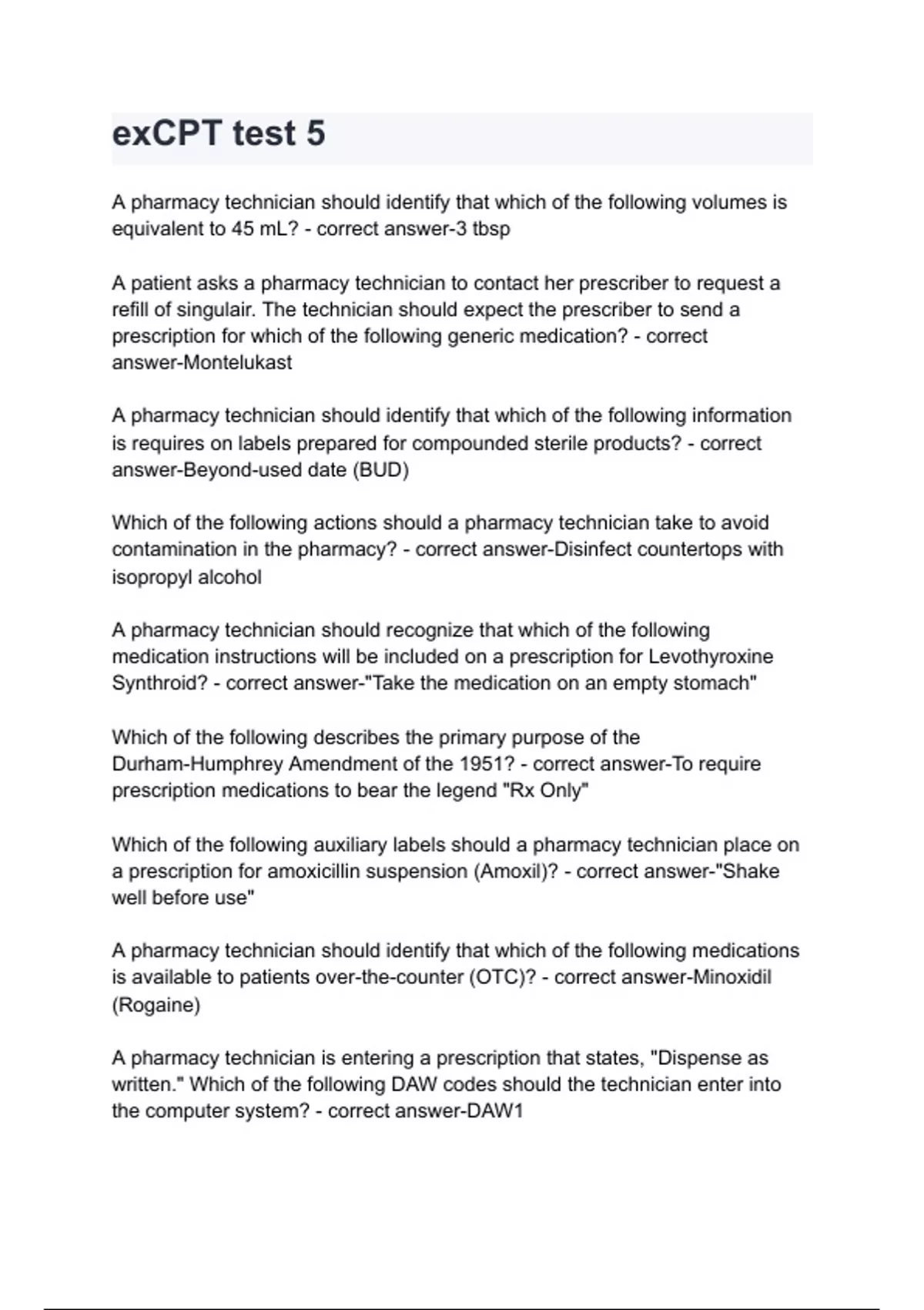 excpt test 5 questions and answers latest 2024