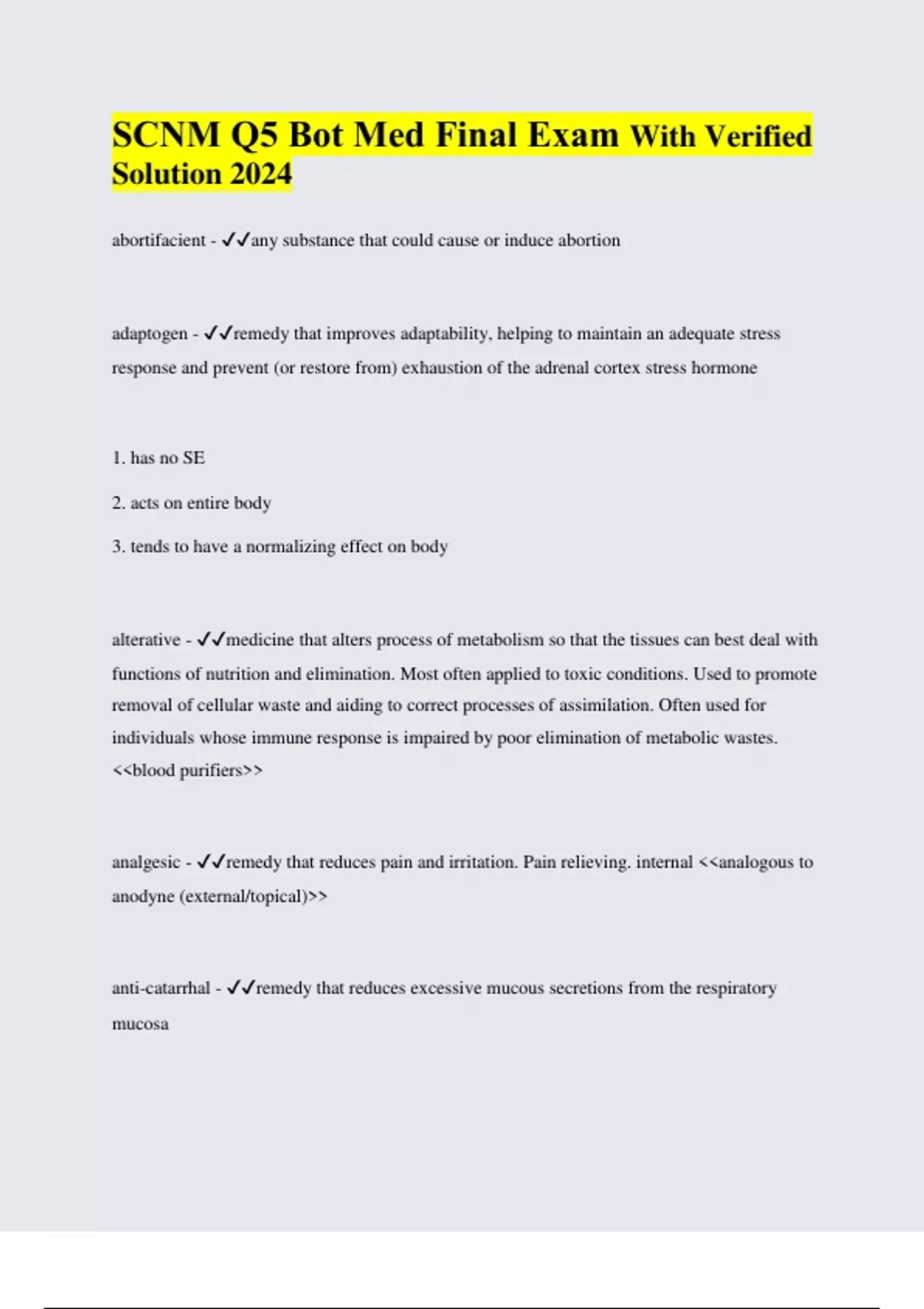 SCNM Q5 Bot Med Final Exam With Verified Solution 2024