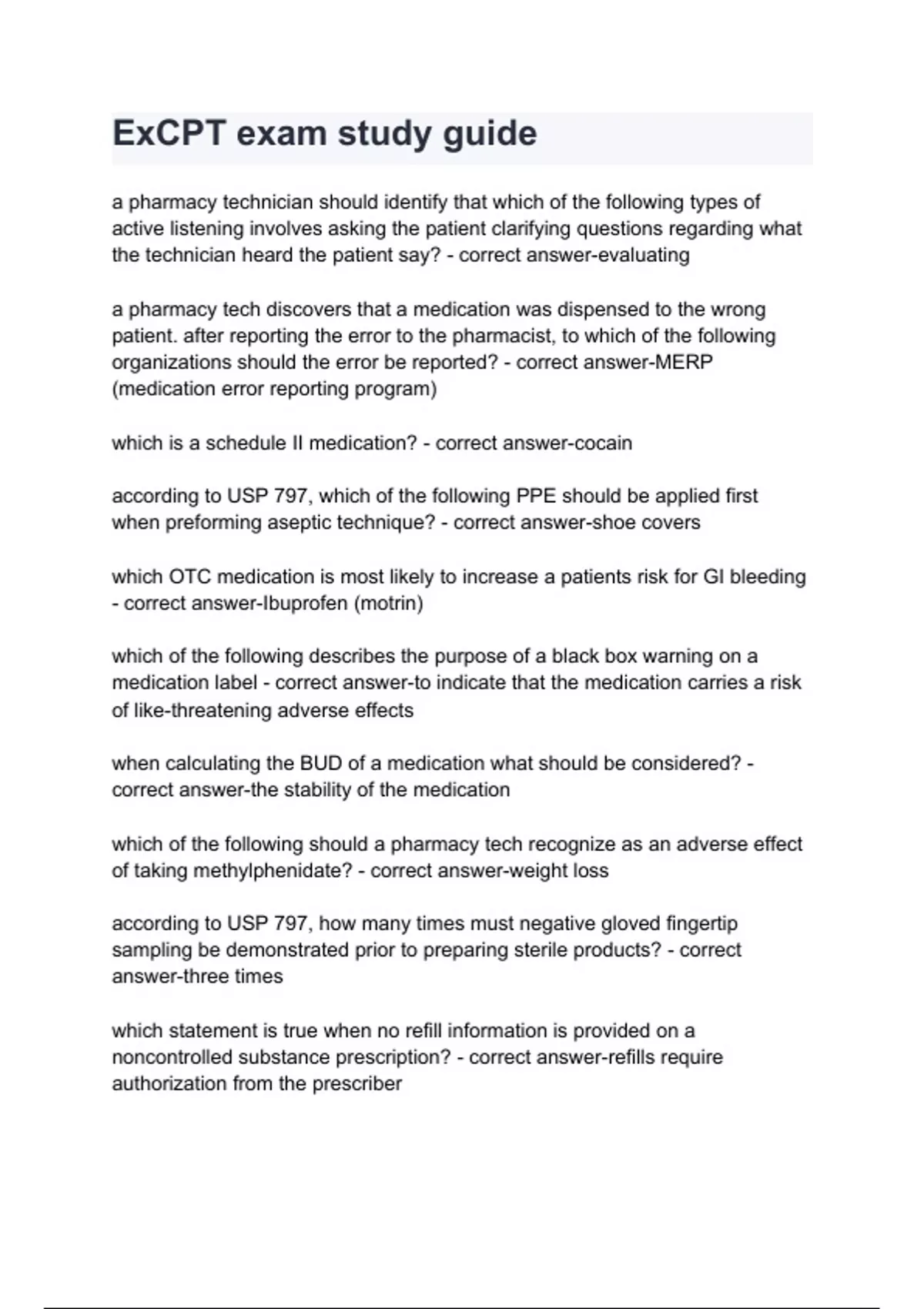 excpt exam study guide questions and answers lates