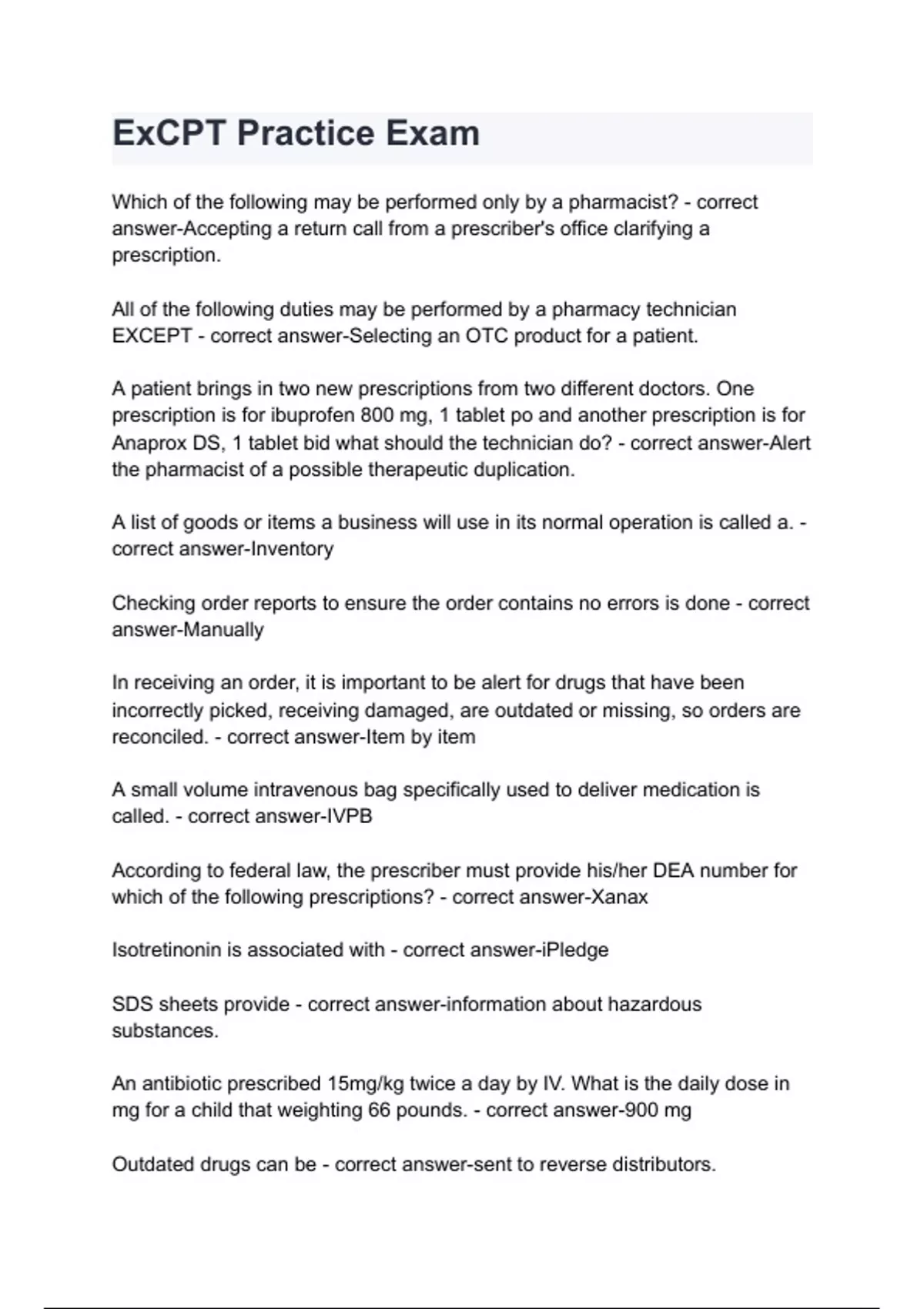 excpt practice exam questions and answers latest 2