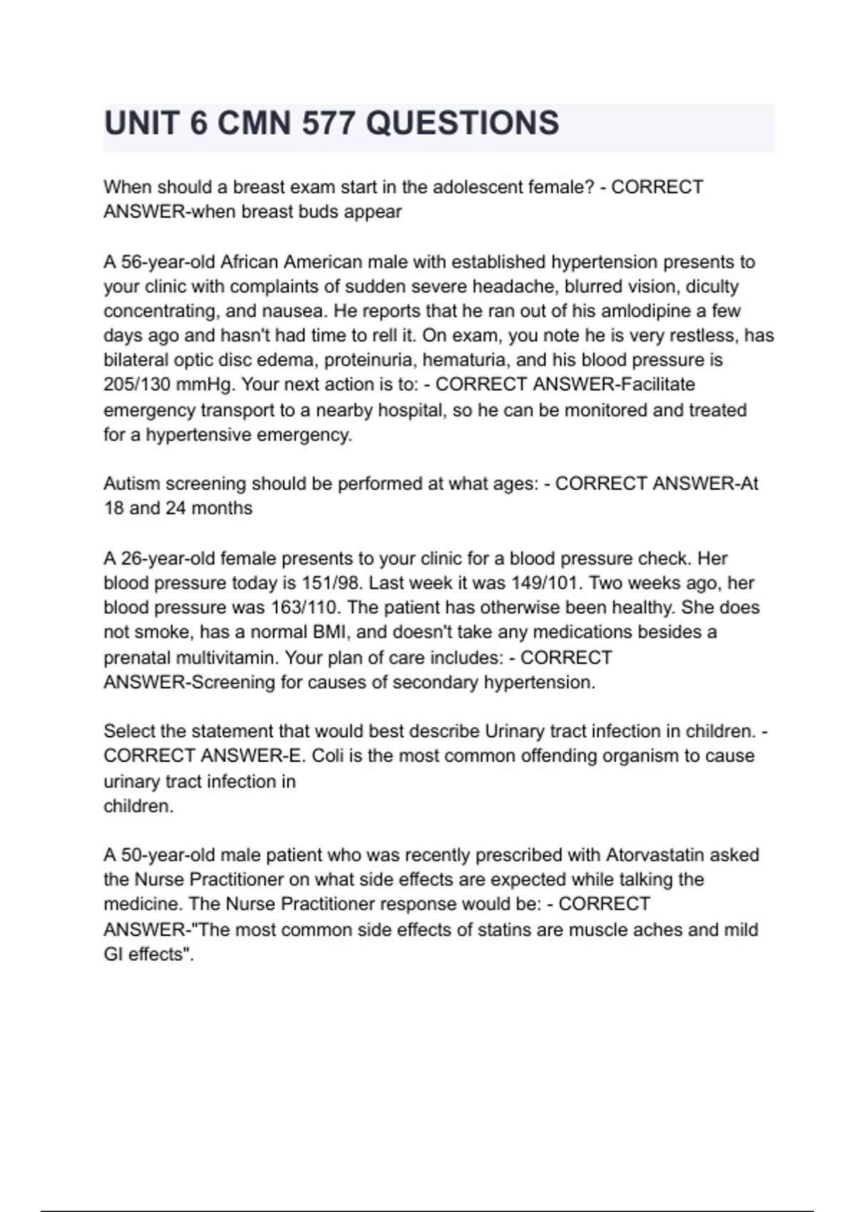 UNIT 6 CMN 577 QUESTIONS