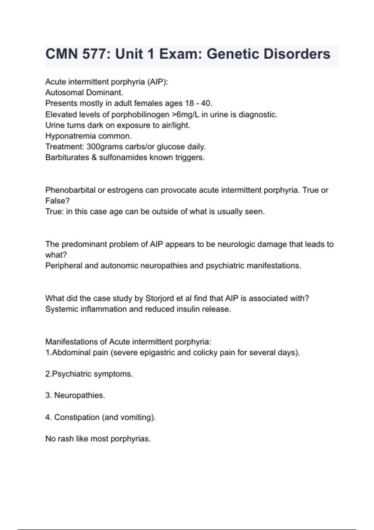 CMN 577_ Unit 1 Exam_ Genetic Disorders questions and answers latest 2024