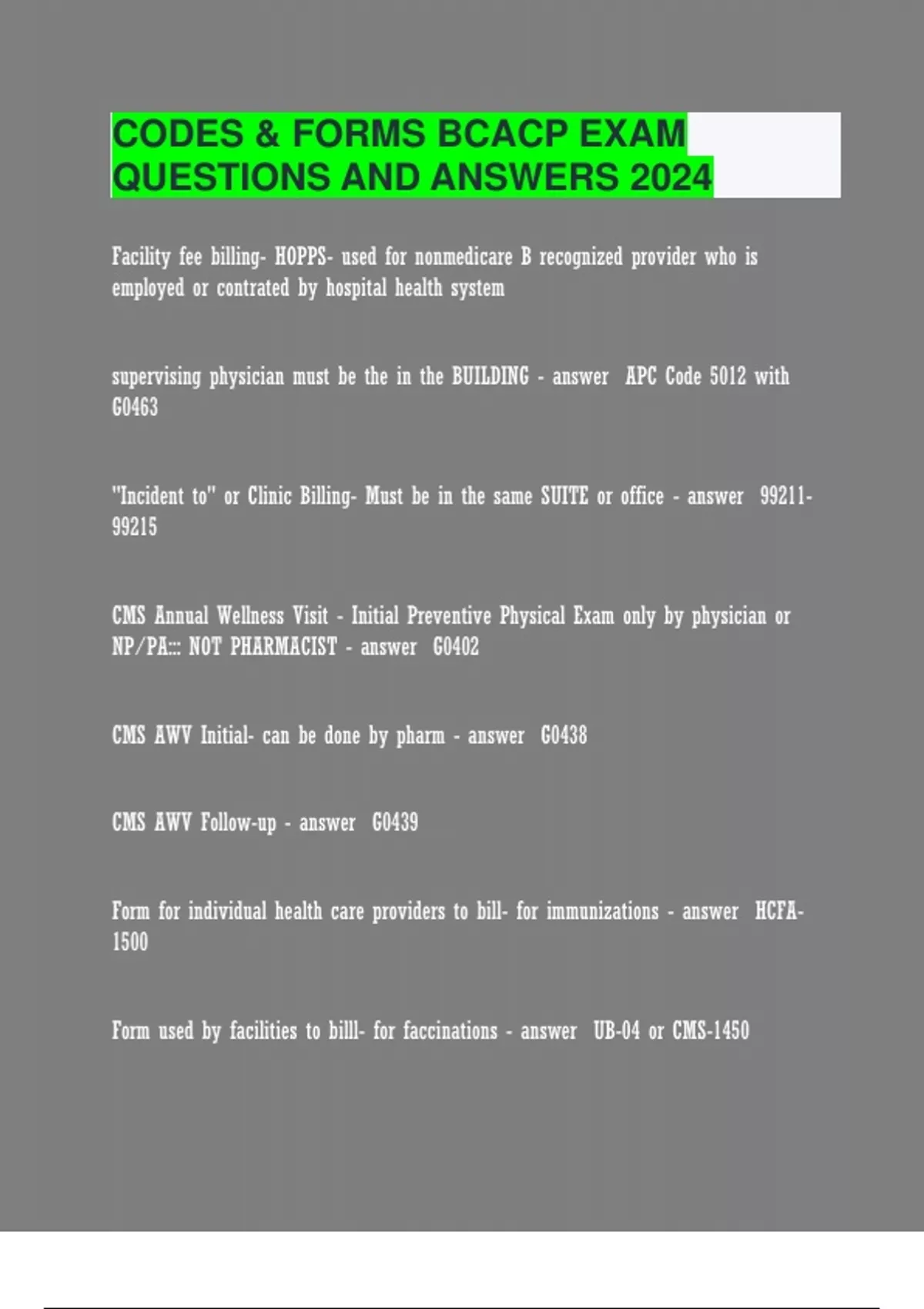 codes forms bcacp exam questions