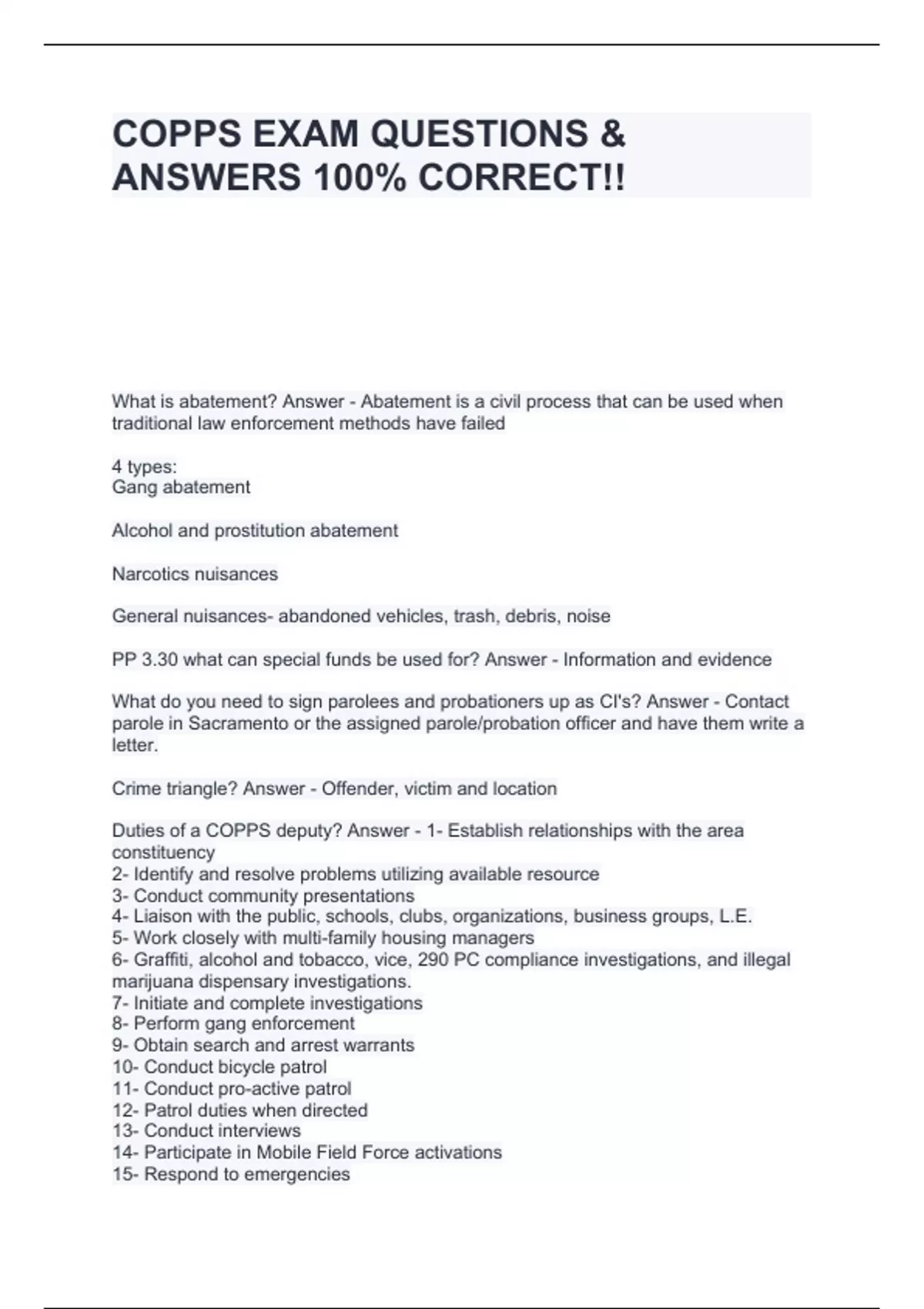COPPS EXAM QUESTIONS & ANSWERS 100% CORRECT!!