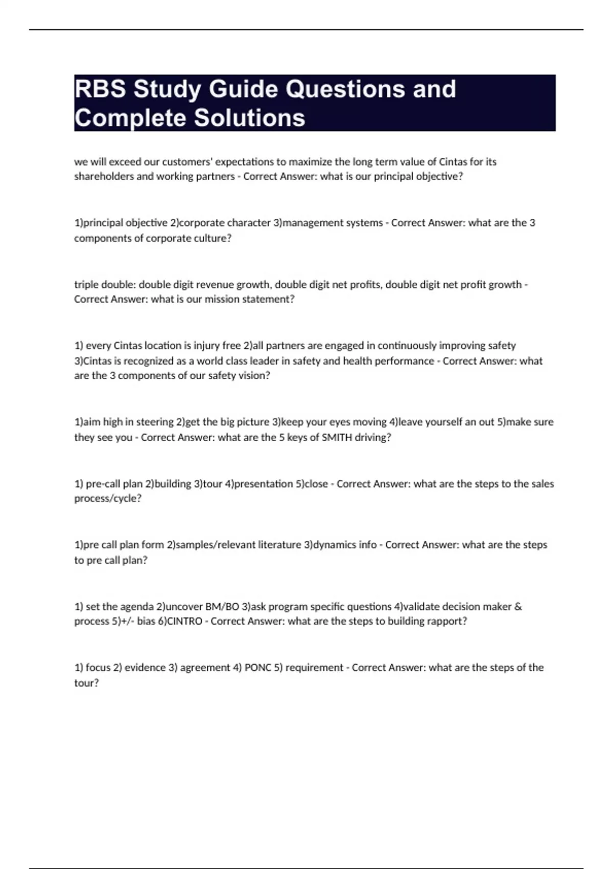 rbs study guide questions and complete solutions