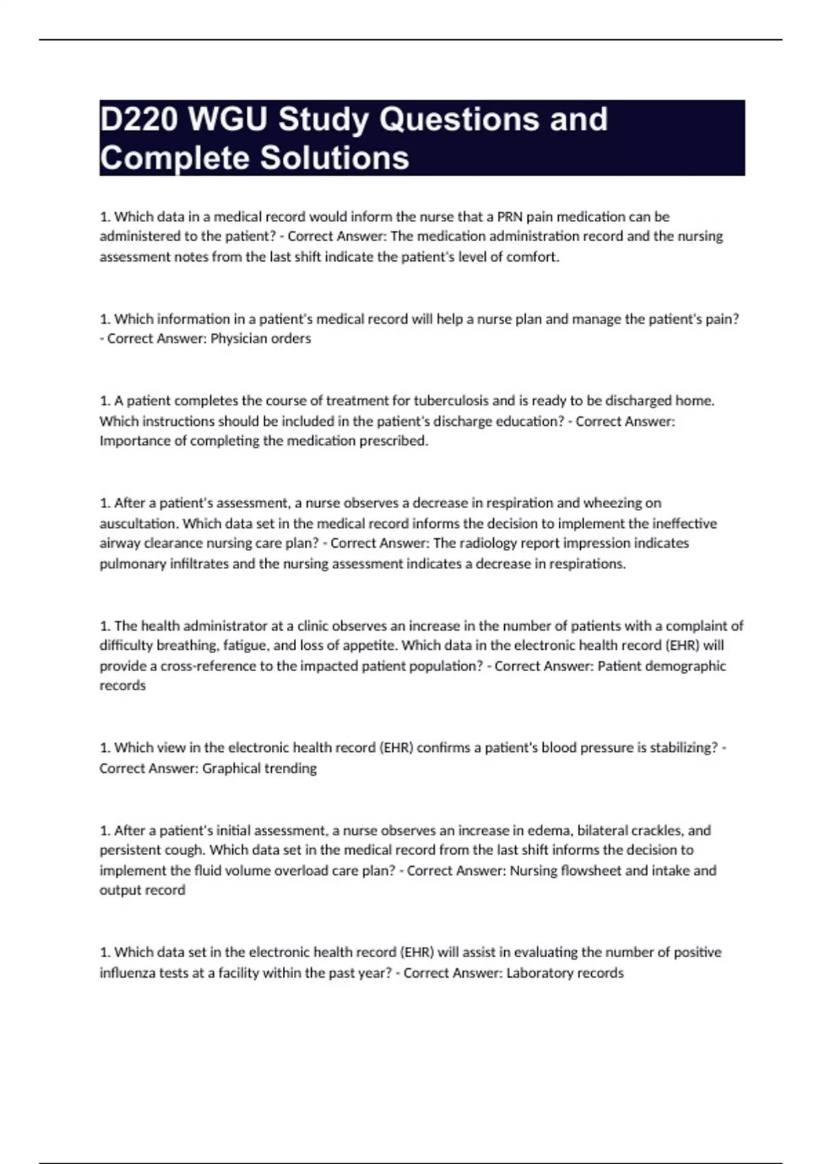 D220 WGU Study Questions and Complete Solutions