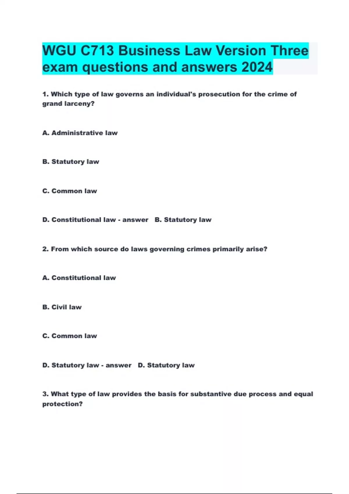WGU :: C713 :: Business Law :: Version Three exam questions and answers 2024
