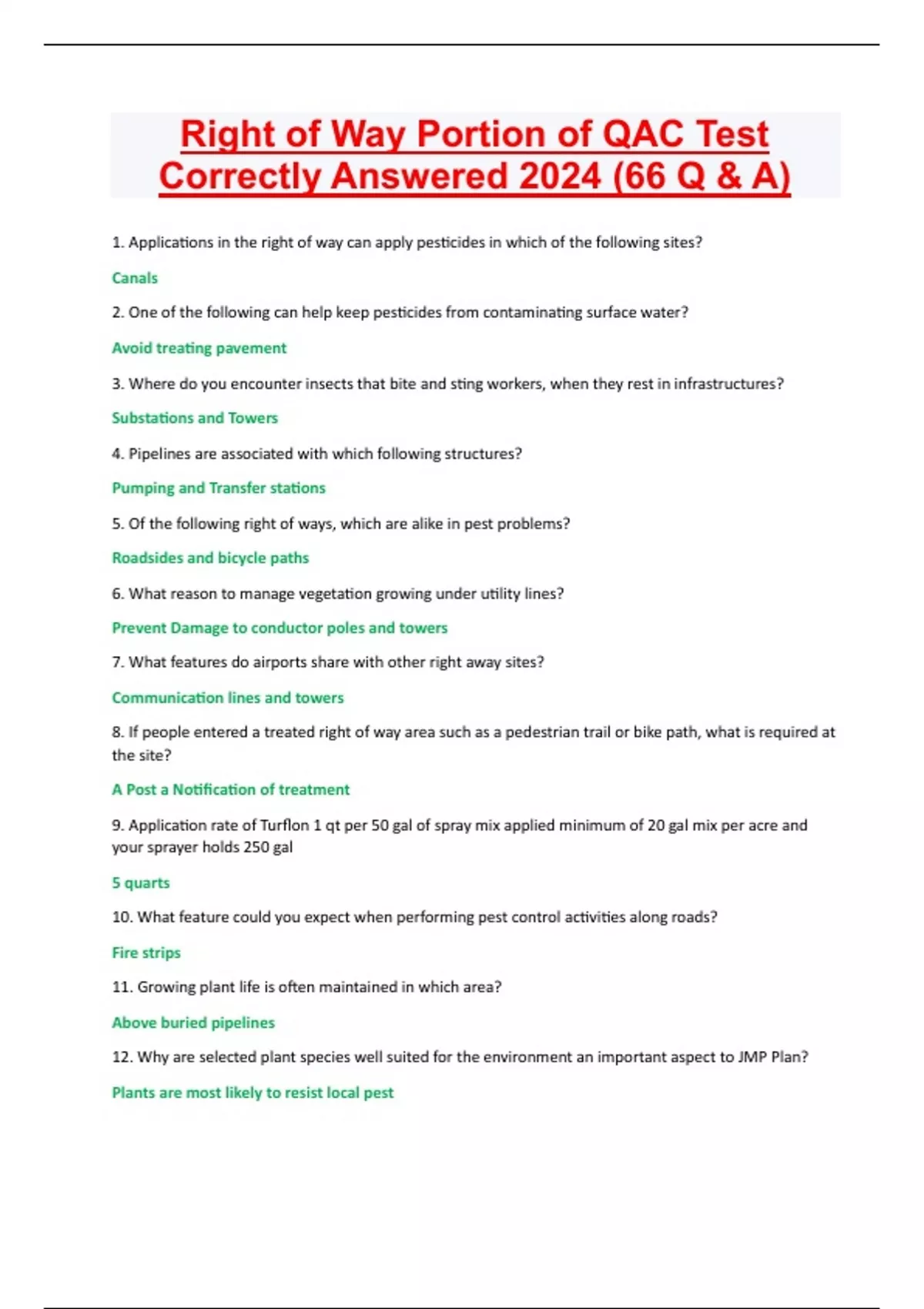 Right of Way Portion of QAC Test Correctly Answered 2024 (66 Q & A)
